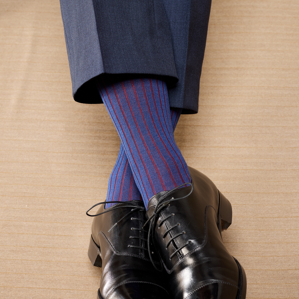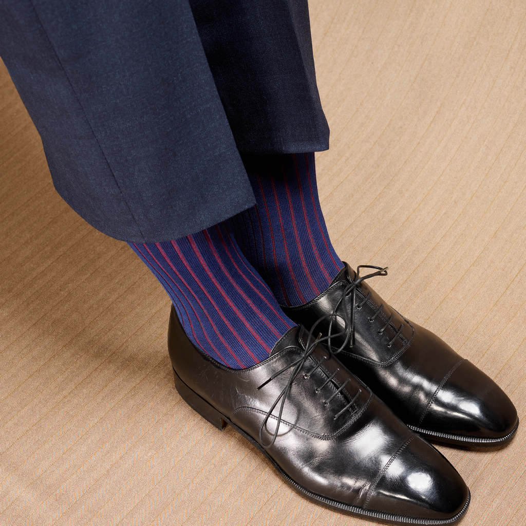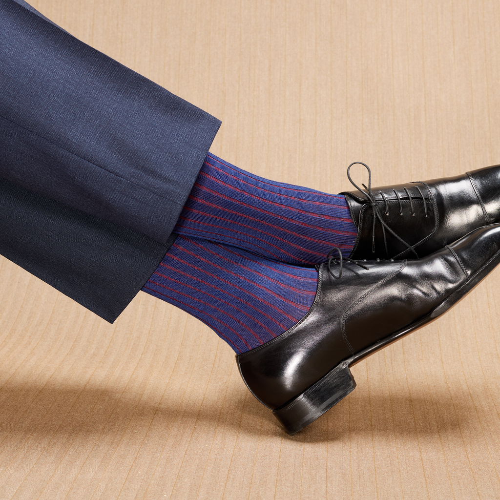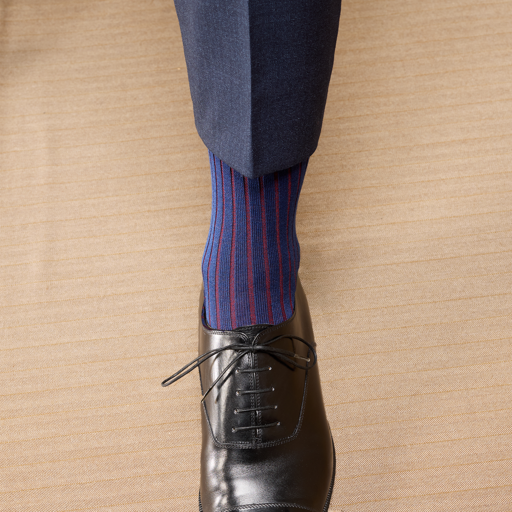 Avantages : elles ont plus de tenue et couvrent le tibia en entier. Leur hauteur est adaptée pour être portée avec des pantalons de costume.