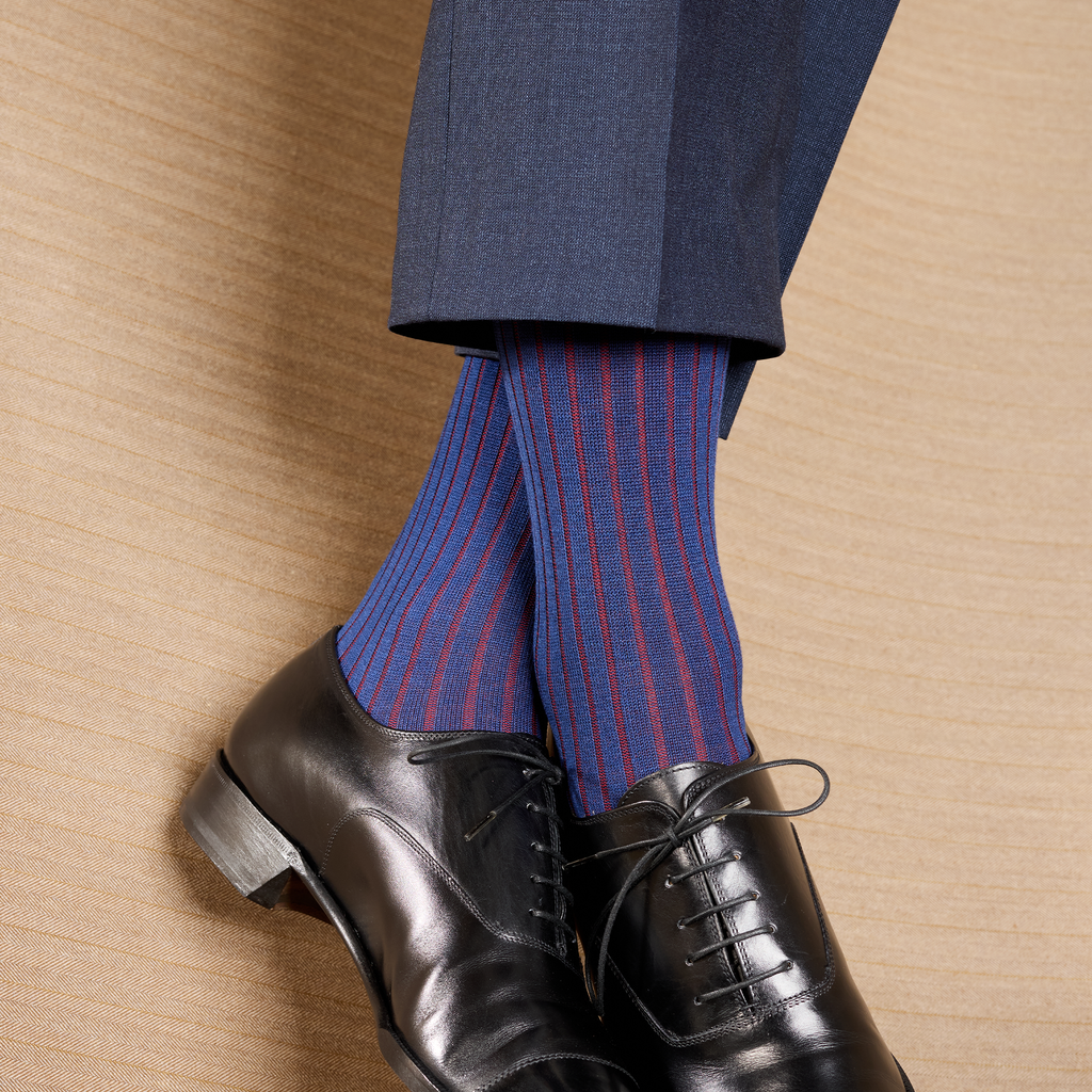 Des rayures bleu outremer et rouge dans la gamme Super-Solide en fil d'Écosse de Mazarin !