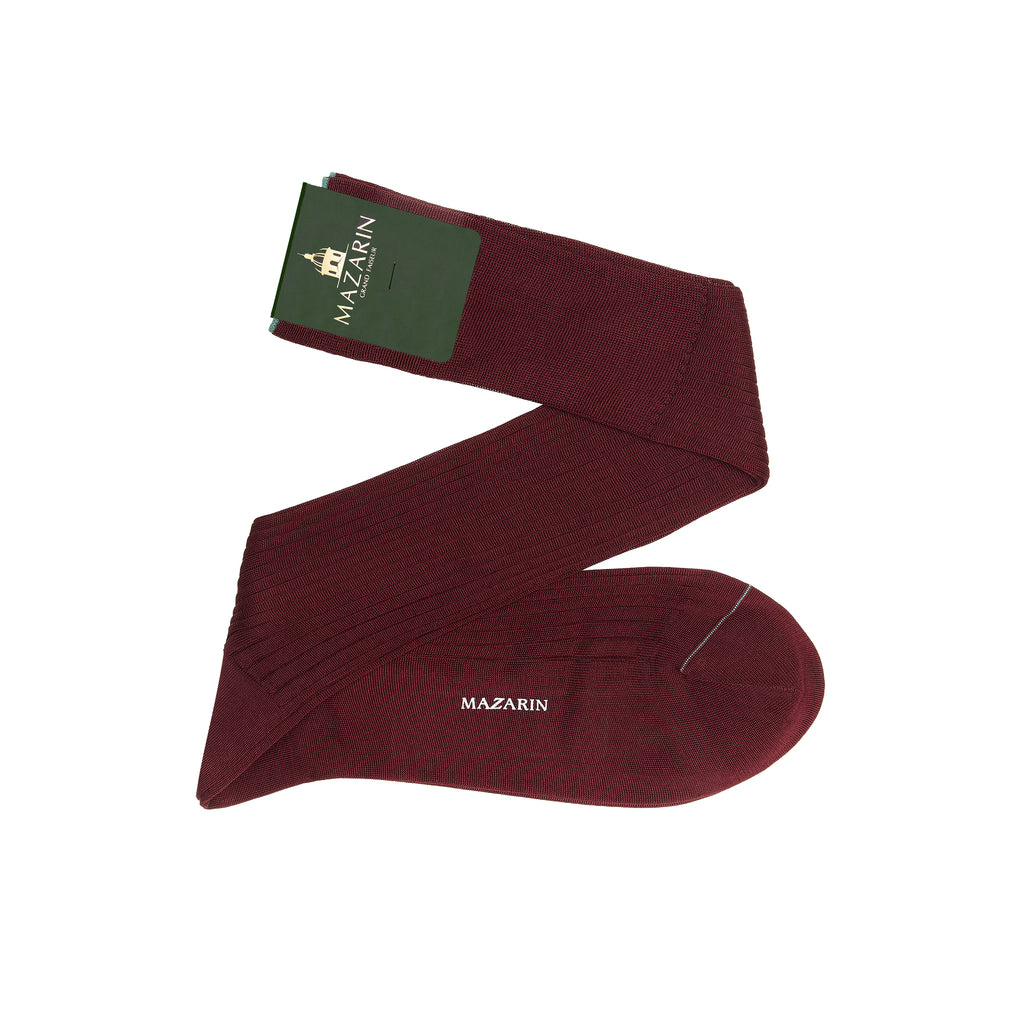 Voici les chaussettes mi-bas bordeaux en 100% fil d'Écosse de Mazarin.