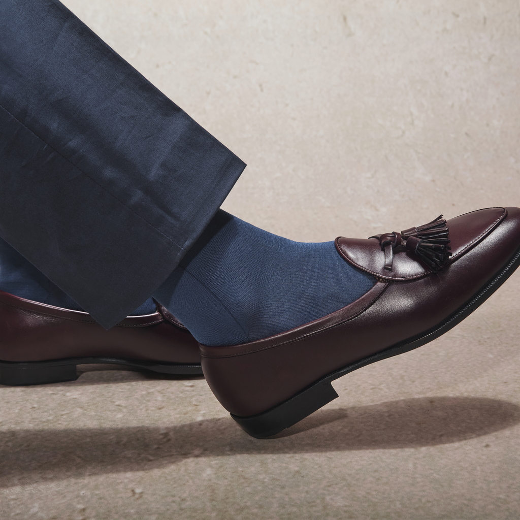 Avantages : elles ont plus de tenue et couvrent le tibia en entier. Leur hauteur est adaptée pour être portée avec des pantalons de costume.