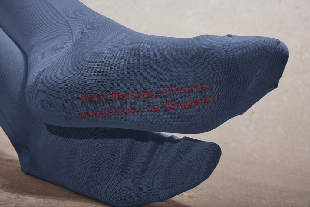 A l'âge de dix ans, Napoléon intègre l'école militaire de Brienne, et porte alors des chaussettes de couleur bleu acier. Cette paire de mi-bas rend hommage à ce qui fut sans doute le pensionnaire le plus brillant de cette école.