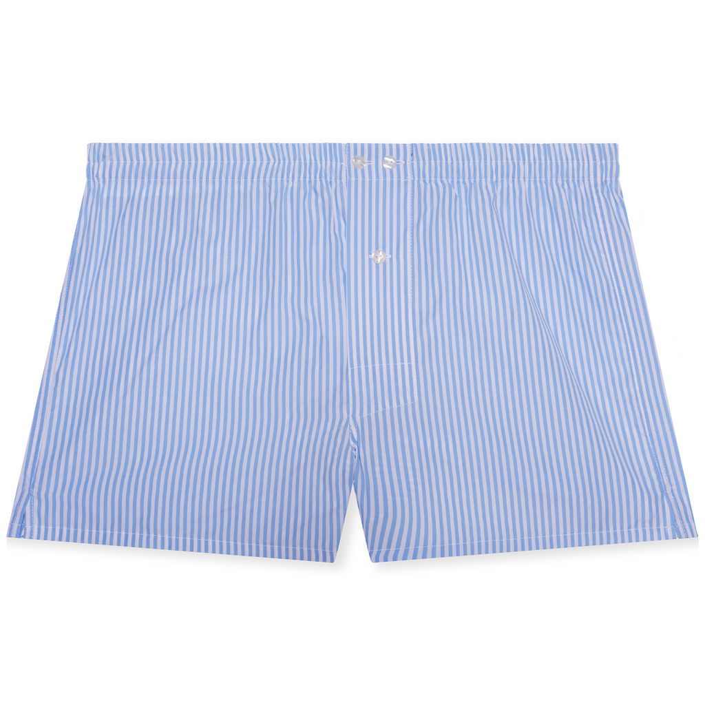 Caleçon rayé blanc et bleu en coton, de la collection de caleçons Mazarin.