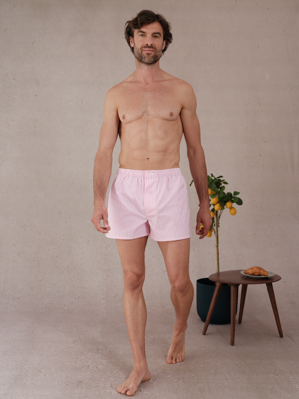 Caleçon coton à rayures roses et blanches, de la marque Mazarin.