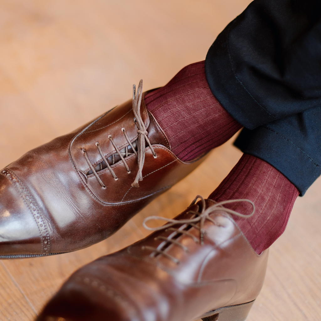 - 1 paire de mi-mollet Mazarin bordeaux en fil d'Écosse