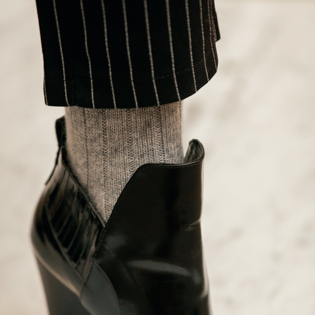Avantages : elles ont plus de tenue et couvrent le tibia en entier. Leur hauteur est adaptée pour être portée avec des pantalons de costume.