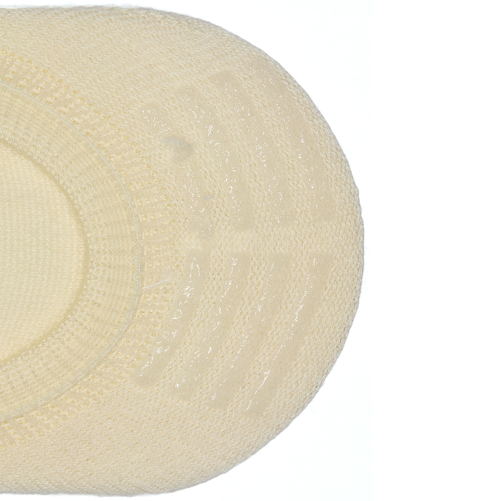 Ces chaussettes invisibles pour femme en laine mérinos de couleur blanc cassé s'accordent parfaitement avec une paire de sneakers. Le maintien est assuré par des bandes anti-glisse situées au niveau du tendon d'Achille.