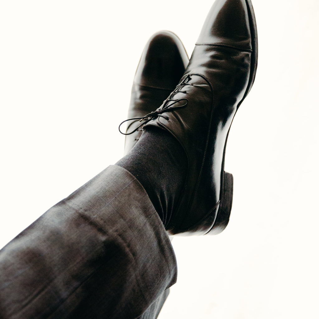 Avantages : elles ont plus de tenue et couvrent le tibia en entier. Leur hauteur est adaptée pour être portée avec des pantalons de costume.