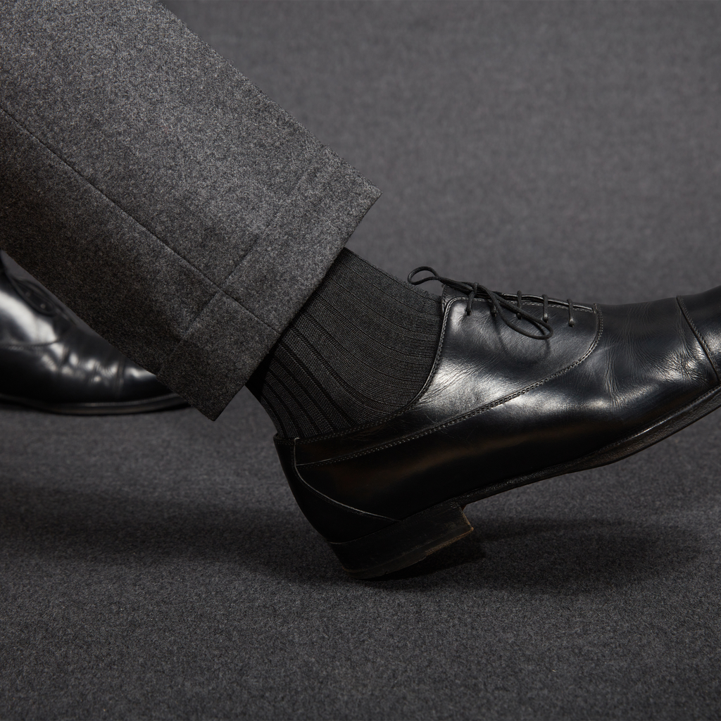 Avantages : elles ont plus de tenue et couvrent le tibia en entier. Leur hauteur est adaptée pour être portée avec des pantalons de costume.