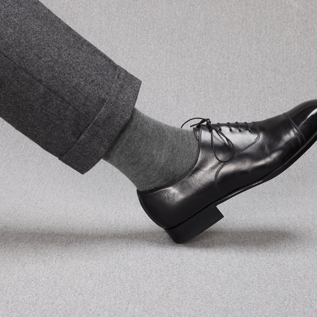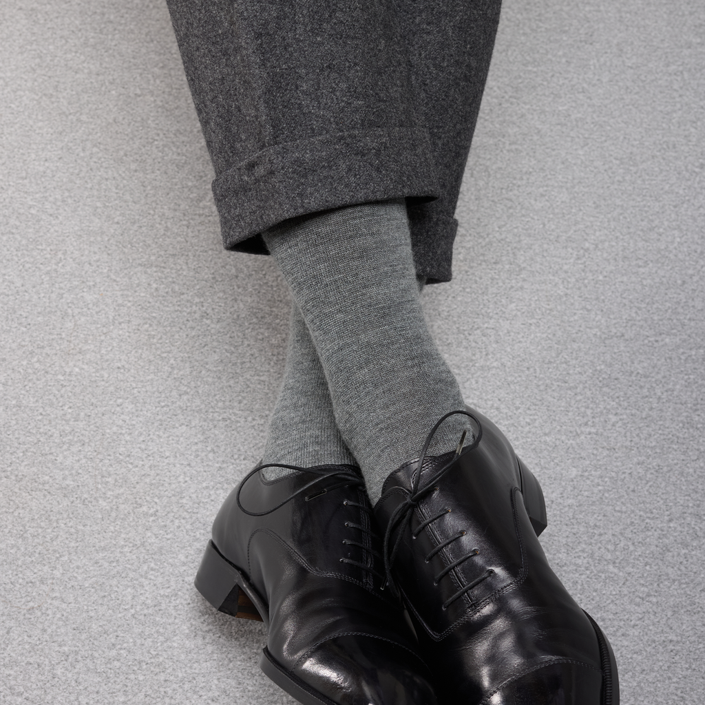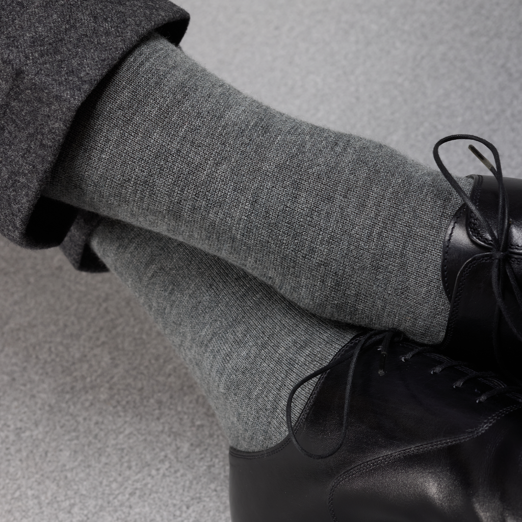 Chaussettes mi-mollet en laine et en cachemire de couleur gris moyen, de la marque Mazarin.
