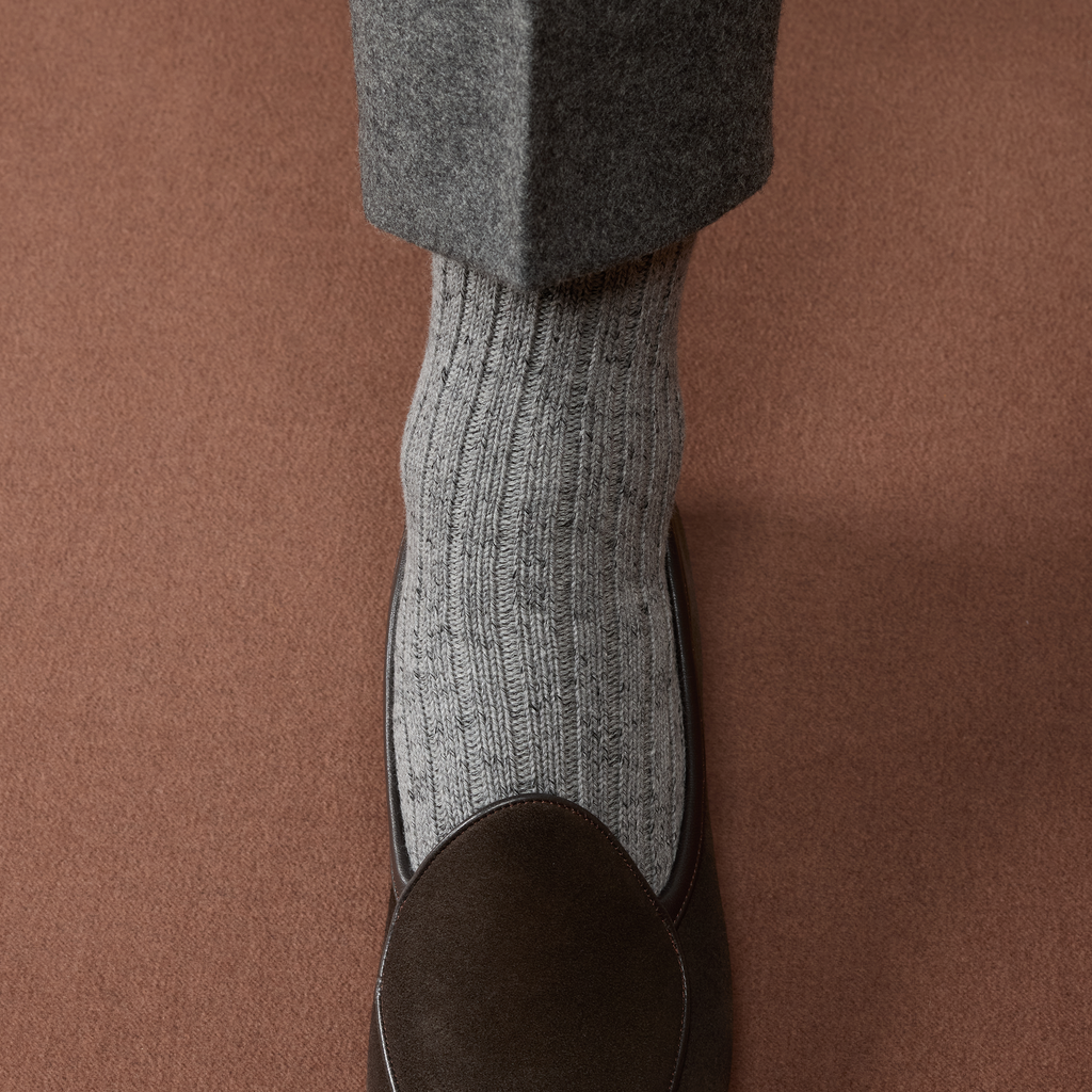 Avantages : elles ont plus de tenue et couvrent le tibia en entier. Leur hauteur est adaptée pour être portée avec des pantalons de costume.