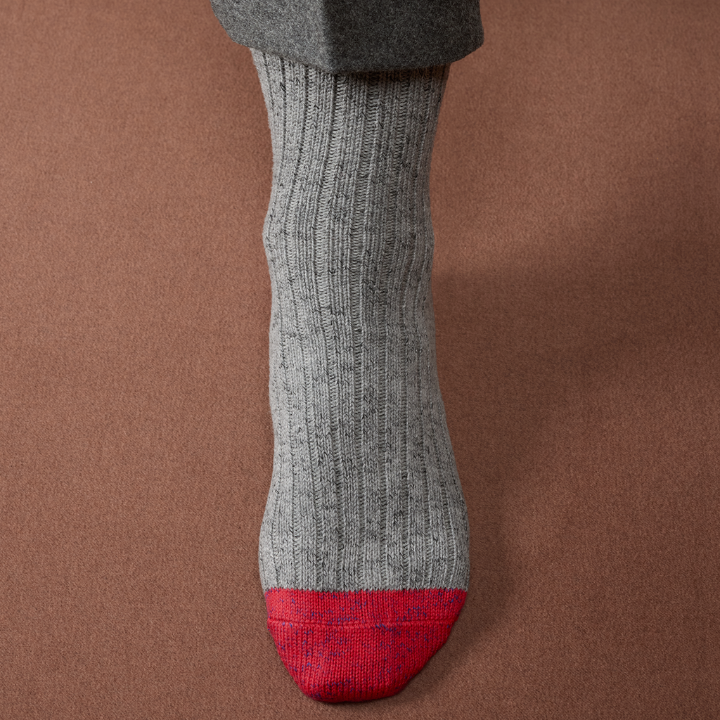 Chaussettes décontractées gris moyen et rouge en coton, par Mazarin.