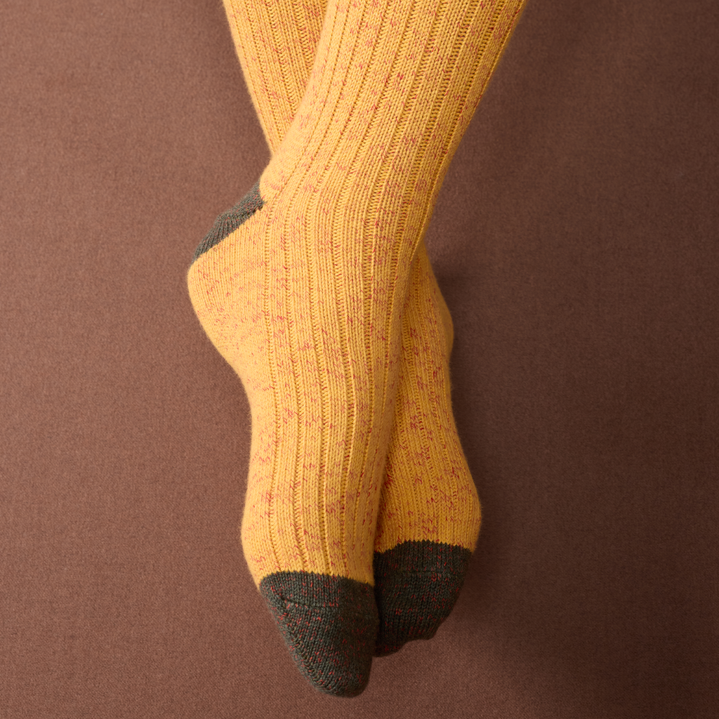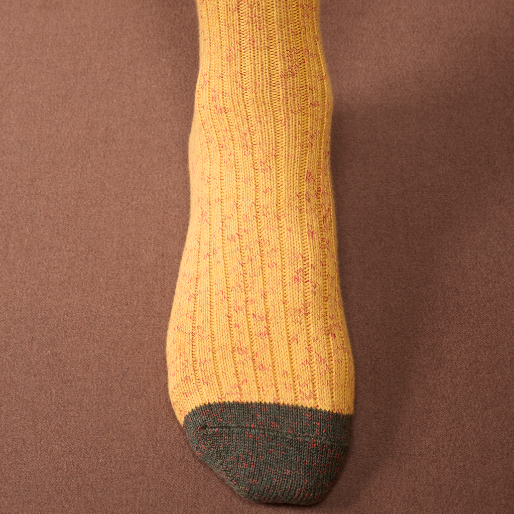 Chaussettes décontractées jaune et vert kaki en coton, par Mazarin.