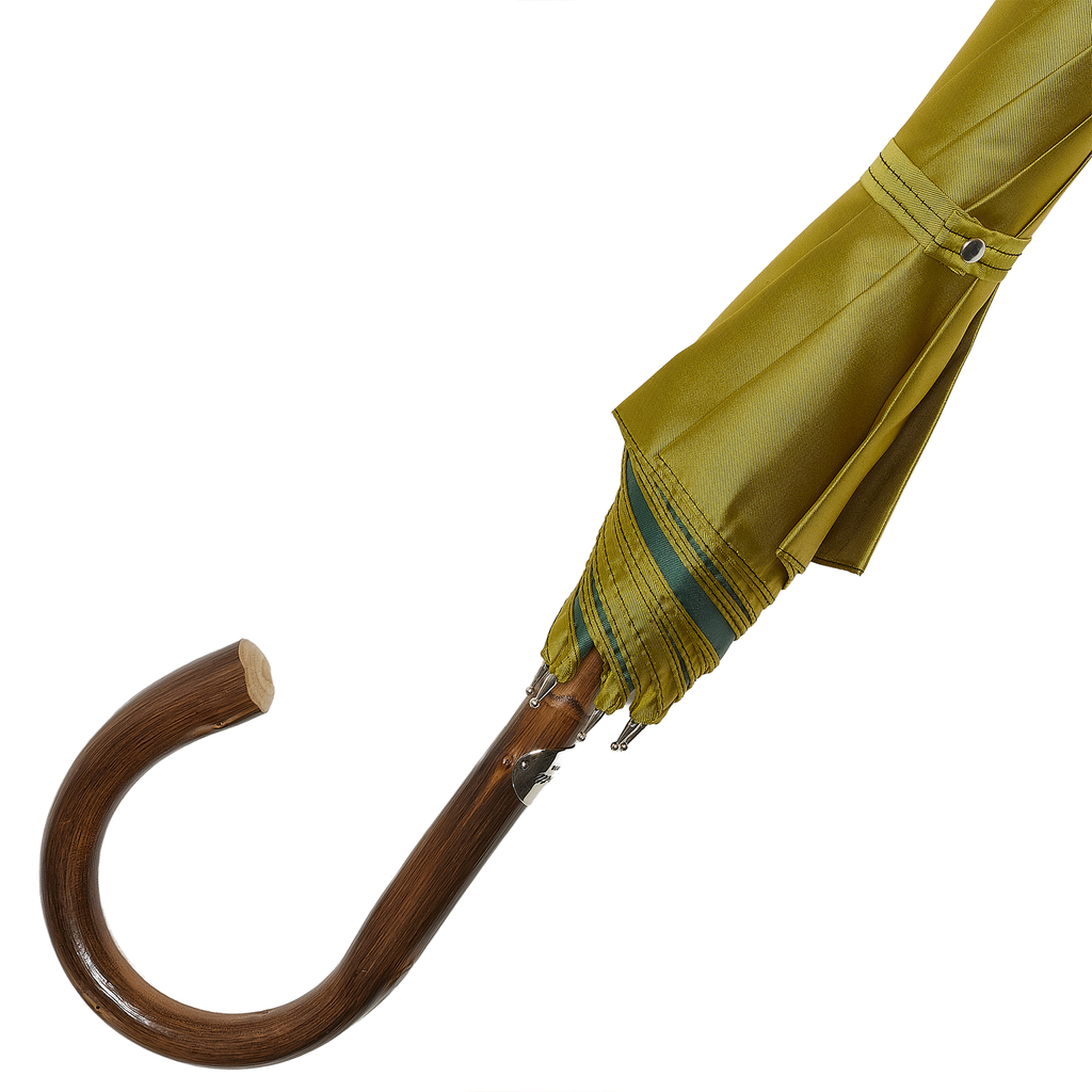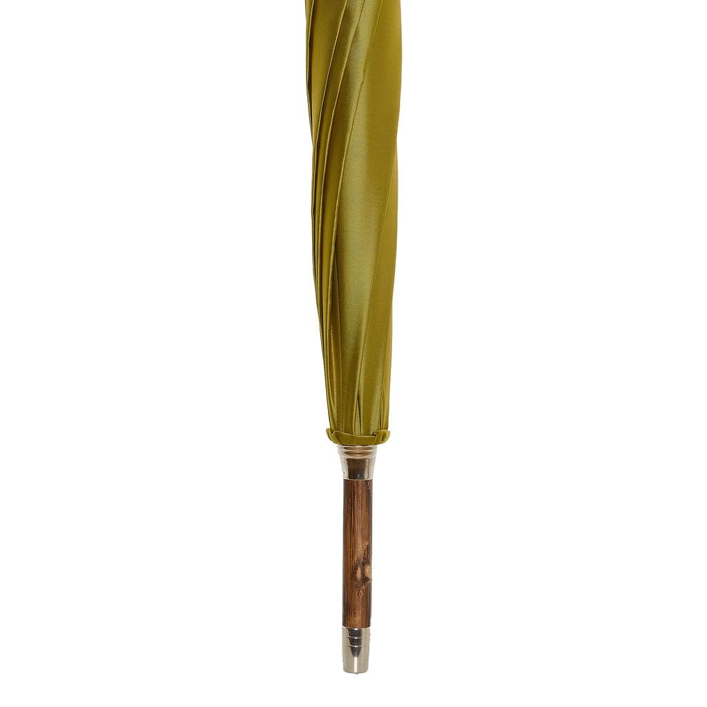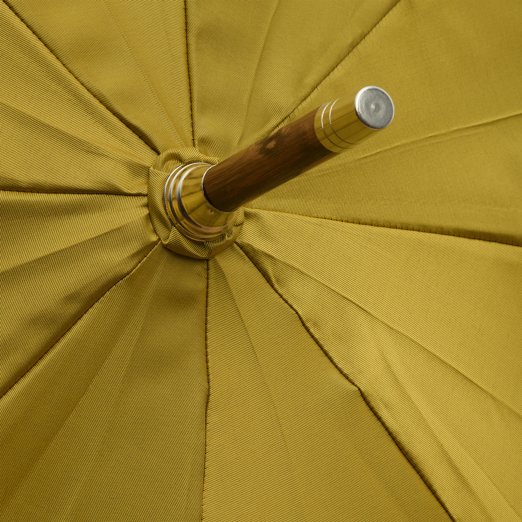 La maison Pasotti présente ce parapluie au contraste audacieux et raffiné, associant une toile extérieure jaune or lumineuse à un intérieur vert gazon vibrant. Un jeu de couleurs original et élégant qui transforme cet accessoire du quotidien en véritable pièce de style, aussi surprenante qu’assumée.