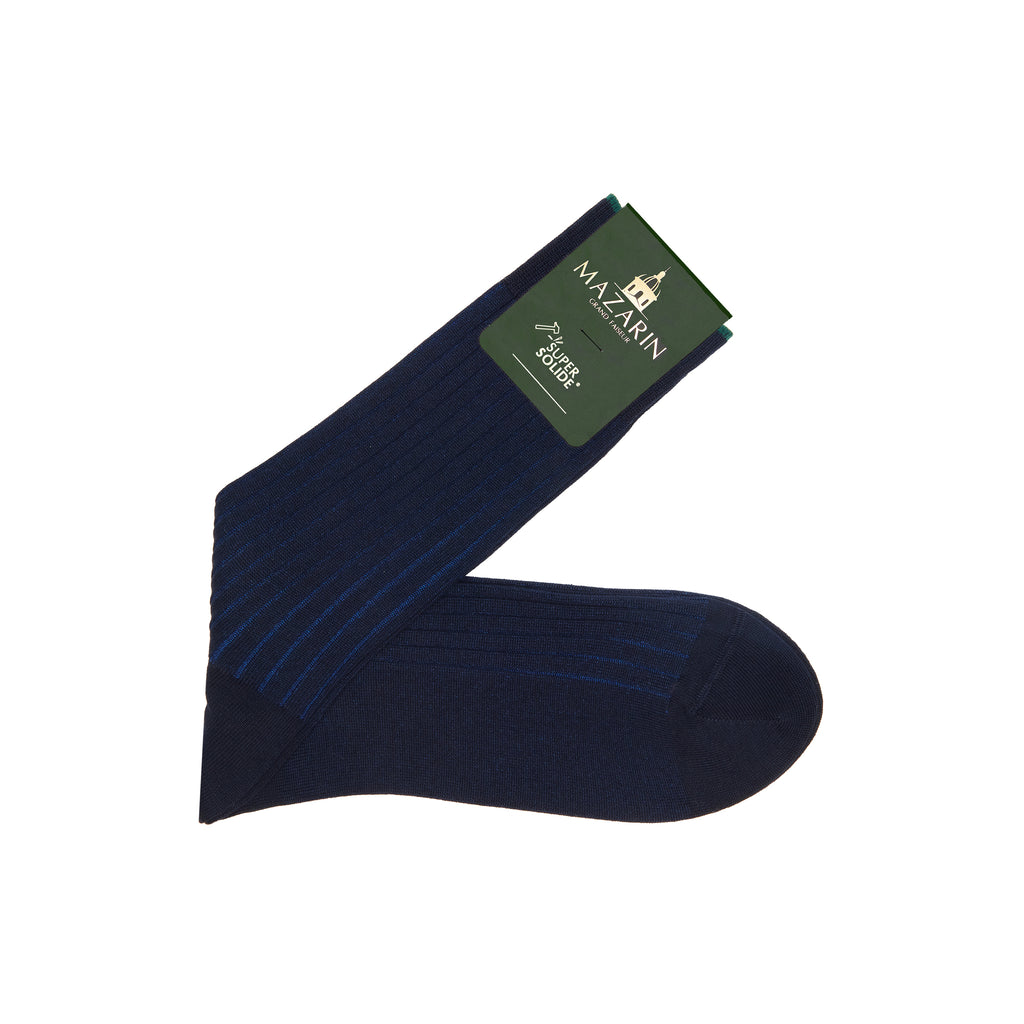 Chaussettes rayées bleu marine et bleu roi en fil d'Écosse super-solide de Mazarin !
