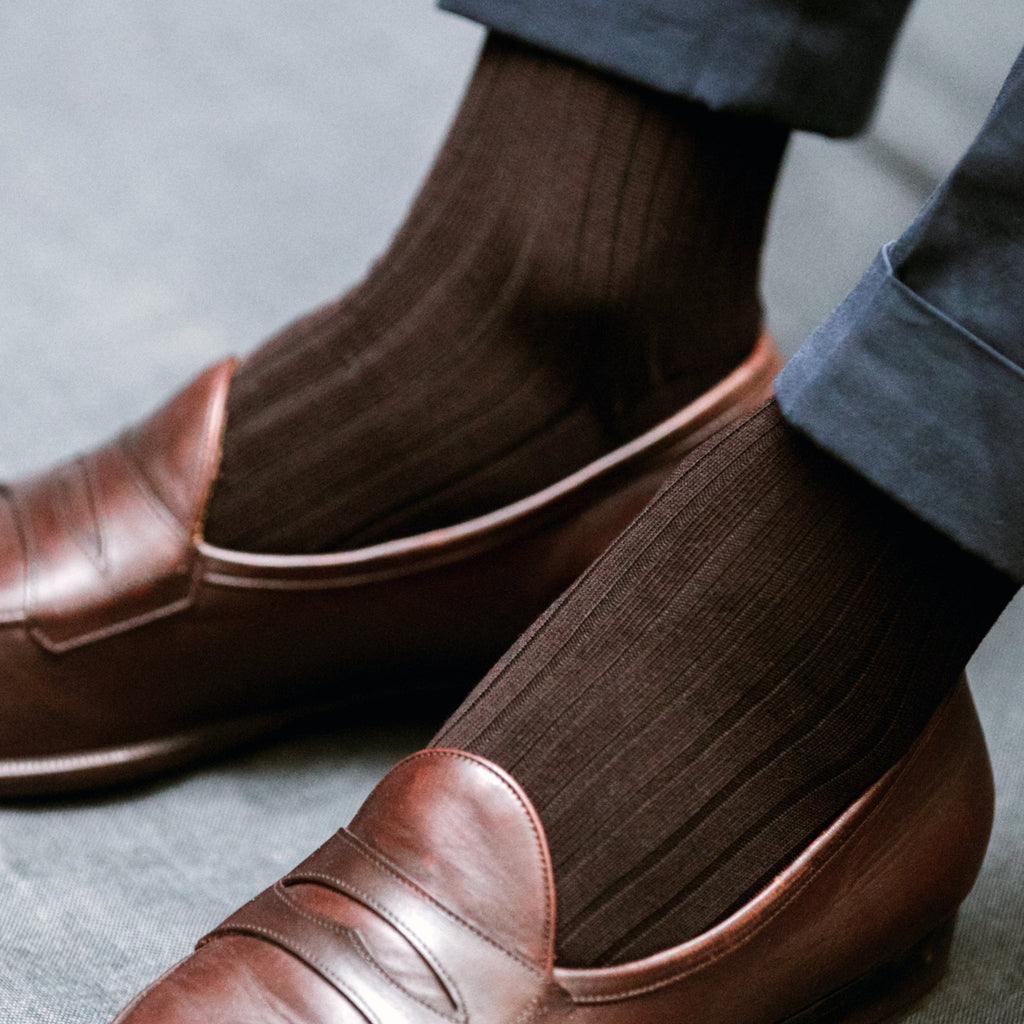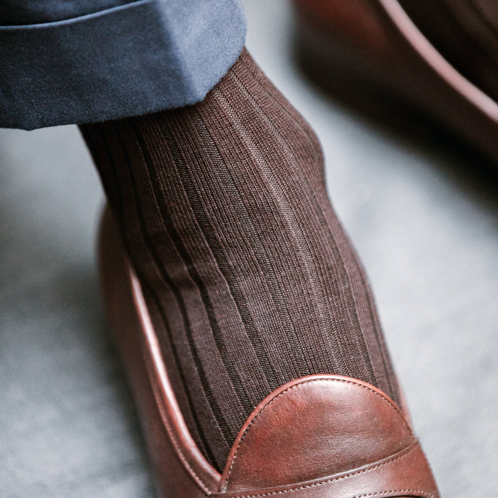Le marron est souvent choisi pour les chaussettes car très facile à porter et à associer avec des tenues.