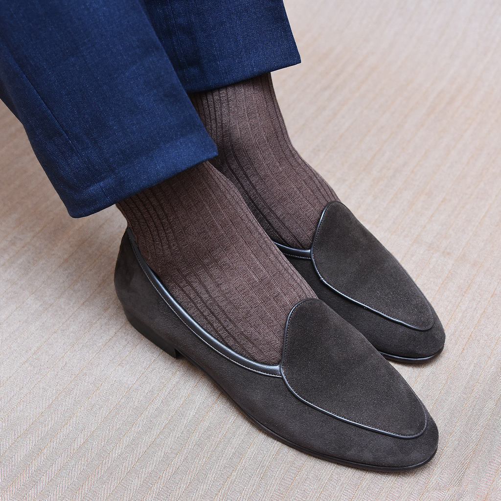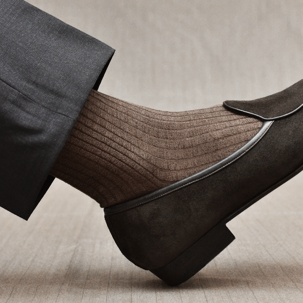 Portées avec un pantalon dans une nuance proche, ces chaussettes contribuent à allonger visuellement la jambe. Associées à des chaussures dans des tons similaires, elles permettent au contraire de créer un contraste subtil et élégant.