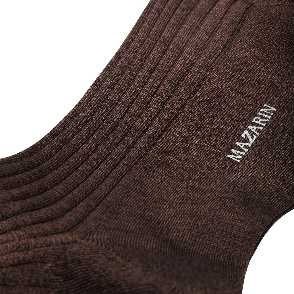 Chaussettes mi-mollet en pur fil d’Écosse de couleur marron glacé, de la marque Mazarin.