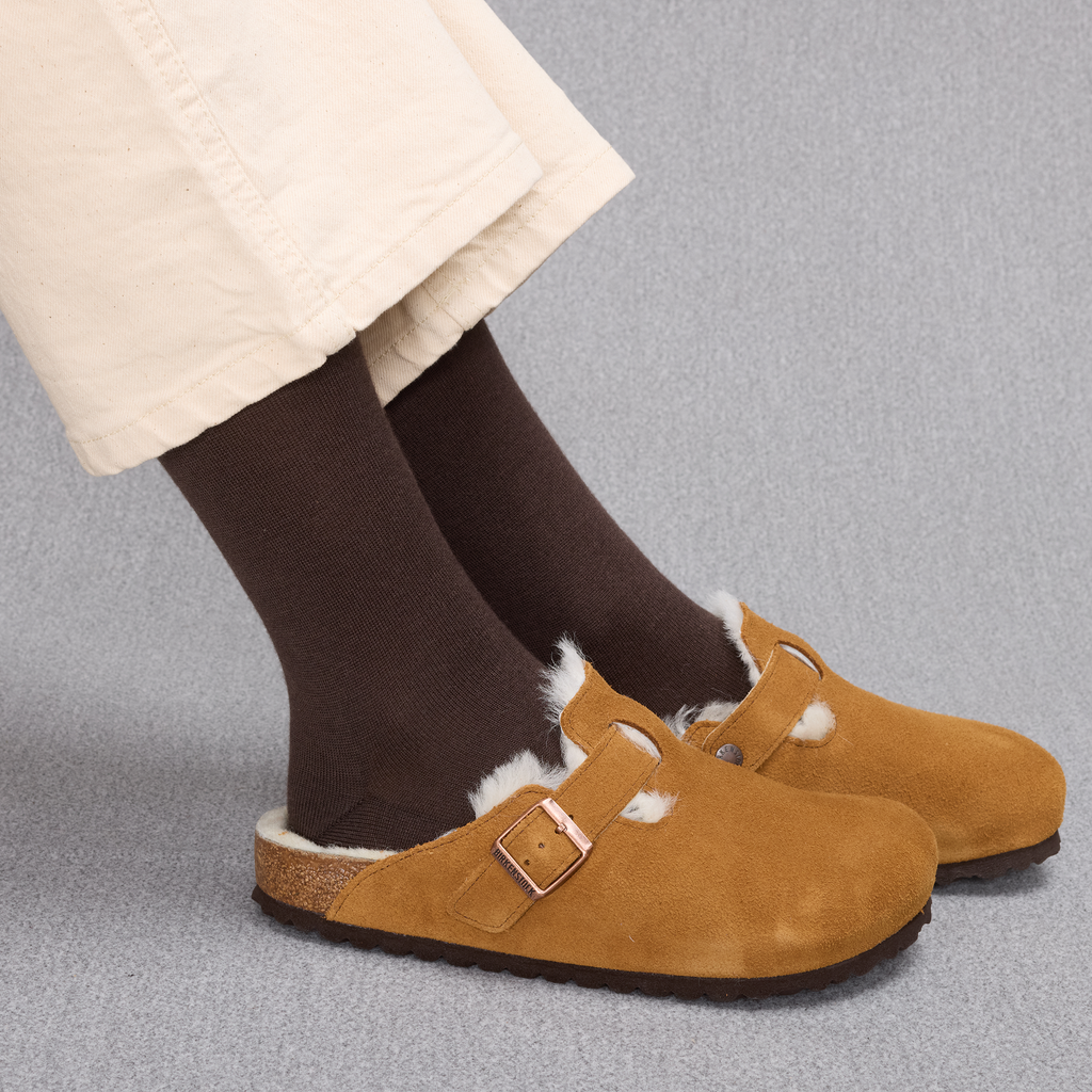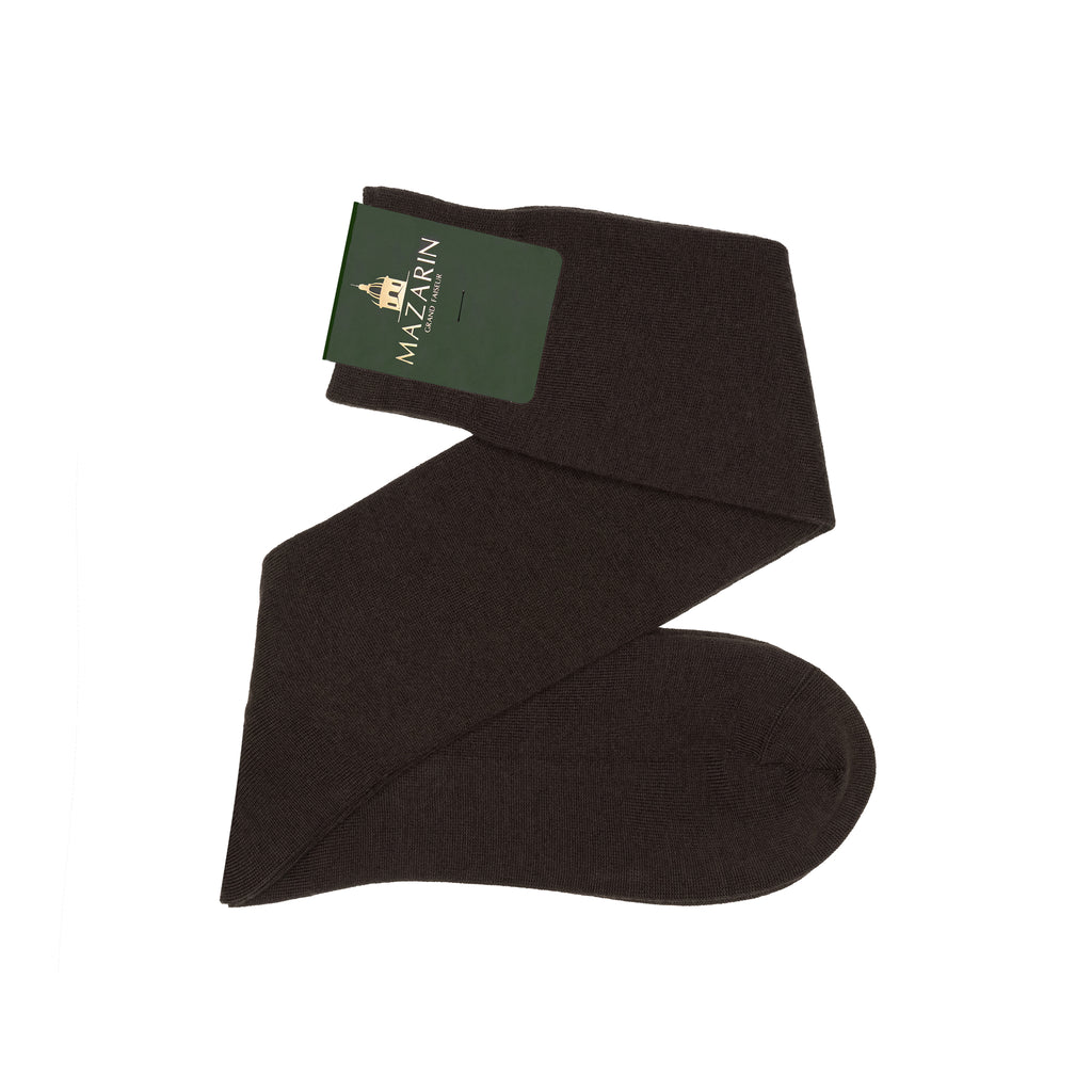 Chaussettes hautes pour femme, en laine et en cachemire de couleur marron foncé, de la marque Mazarin.