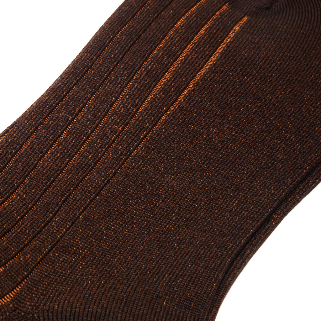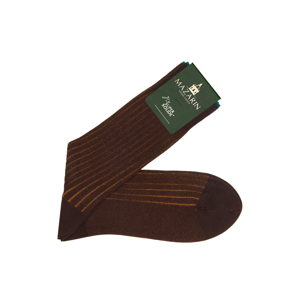 Chaussettes en fil d'Écosse marron foncé à rayures orange, de la gamme Super-solide par Mazarin.