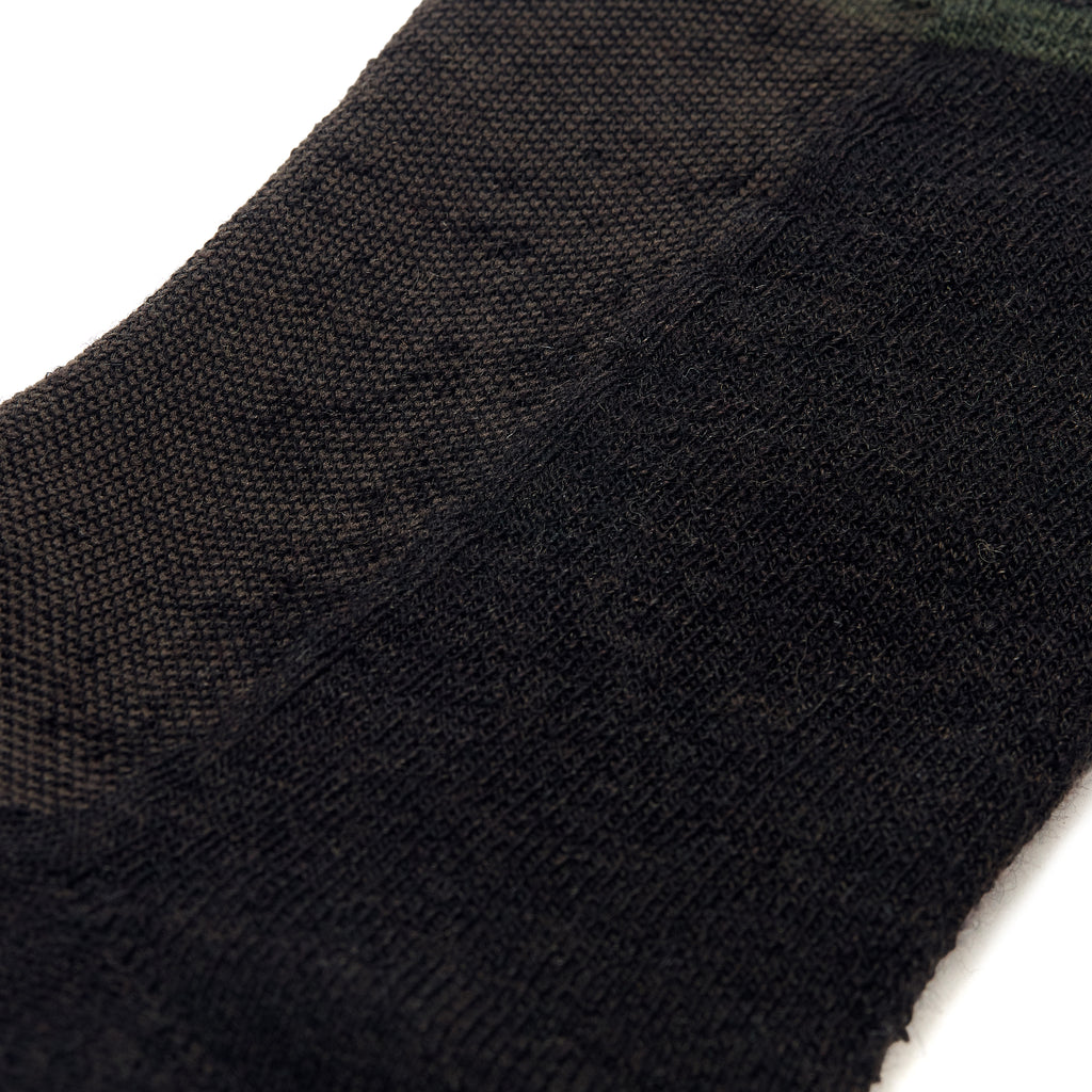 Chaussettes très courtes en laine marron et vert, idéales pour le sport comme la randonnée ou en tant que sur-chaussettes de chasse. Fabriqué par la marque Mazarin.