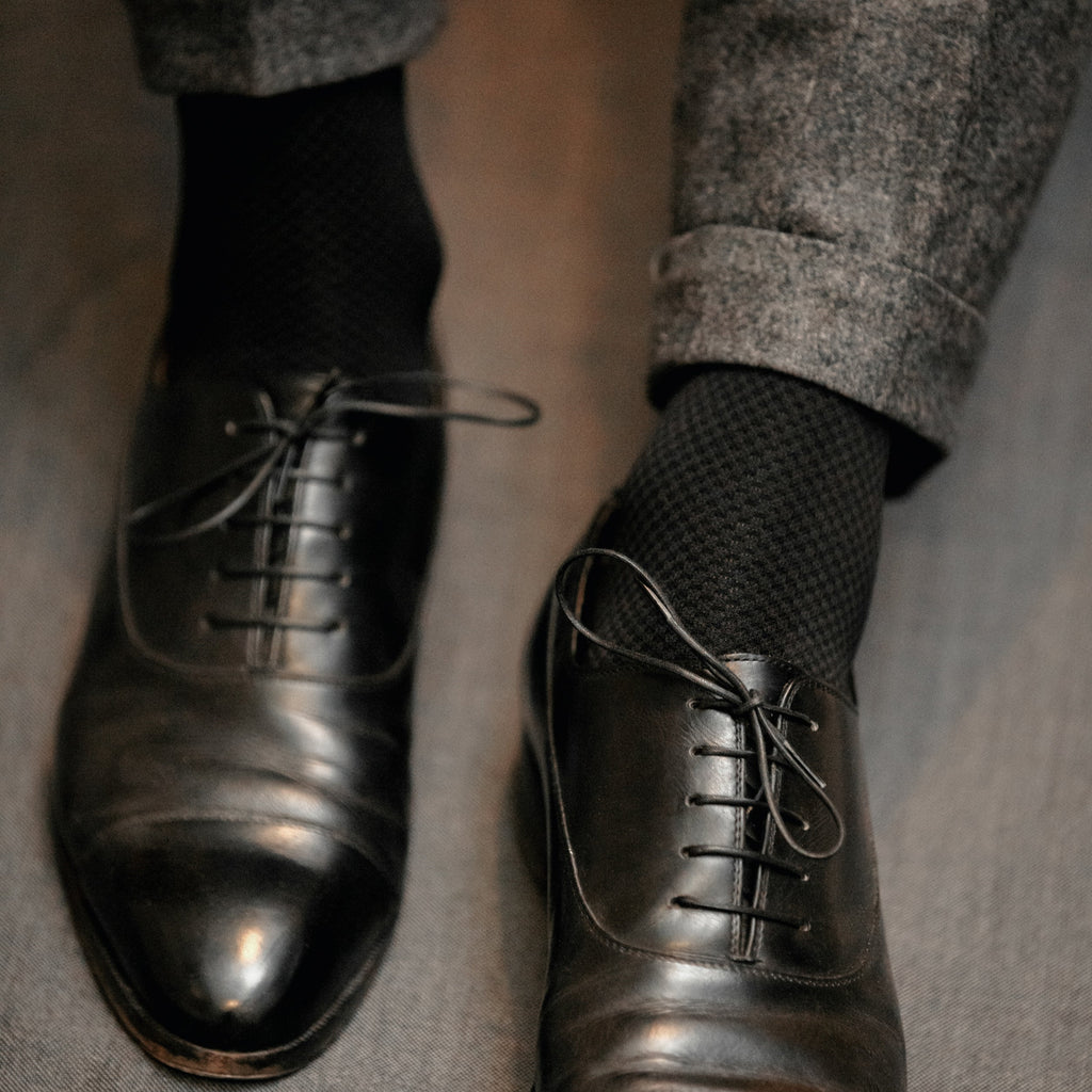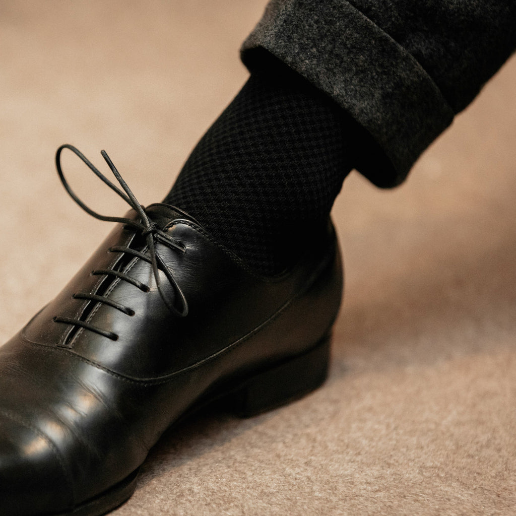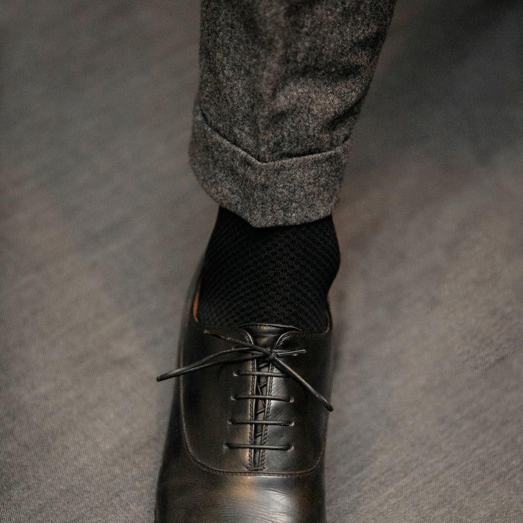 Avantages : elles ont plus de tenue et couvrent le tibia en entier. Leur hauteur est adaptée pour être portée avec des pantalons de costume.