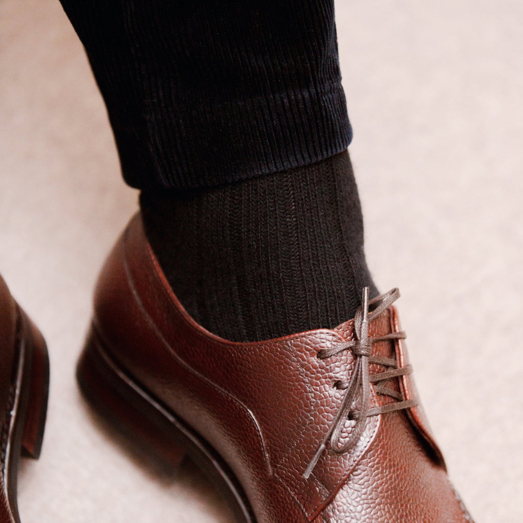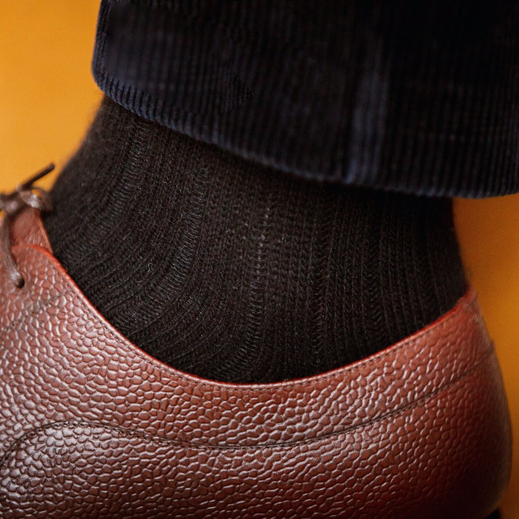 Avantages : elles ont plus de tenue et couvrent le tibia en entier. Leur hauteur est adaptée pour être portée avec des pantalons de costume.