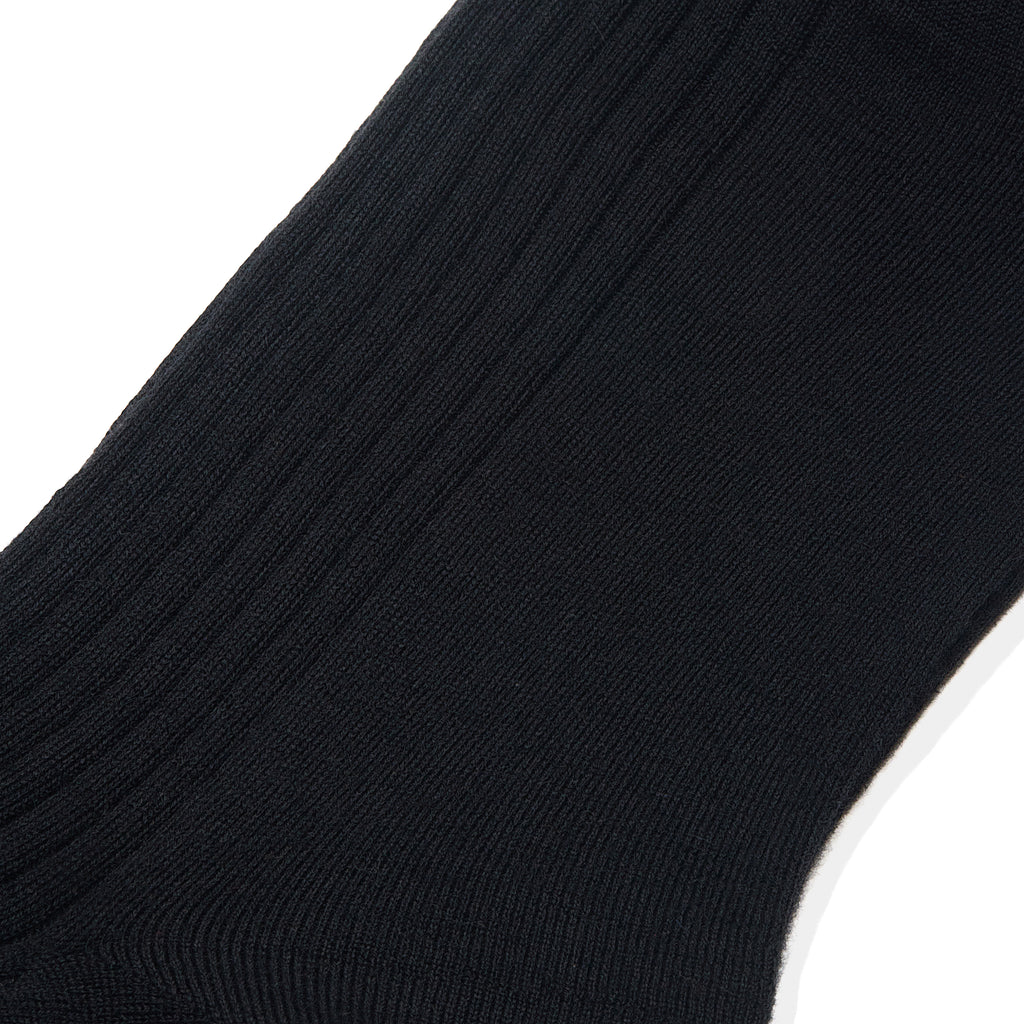 Voici une paire de chaussettes mi-bas (hautes) Mazarin en Cachemire & Soie noir. Cette paire est d'une douceur sans pareille, mêlant le touché soyeux et la douceur du cachemire et la légèreté et la brillance de la soie. Les mi-bas parfaites pour l'hiver, par leur composition mais aussi par leur hauteur (les mi-bas couvrent l'intégralité du mollet pour plus de chaleur) ! Chaudes mais pas trop épaisses, elles sont parfaites pour aller avec tous vos souliers, mêmes les plus étroits.