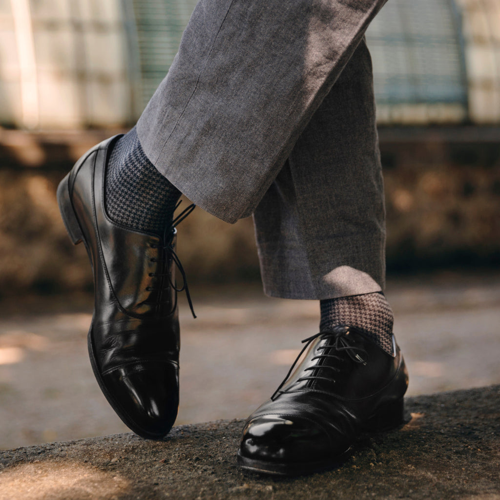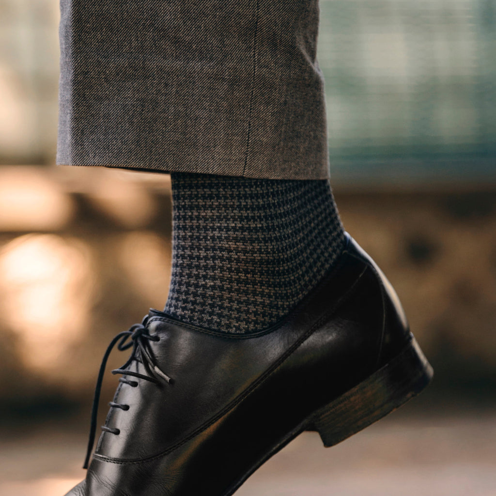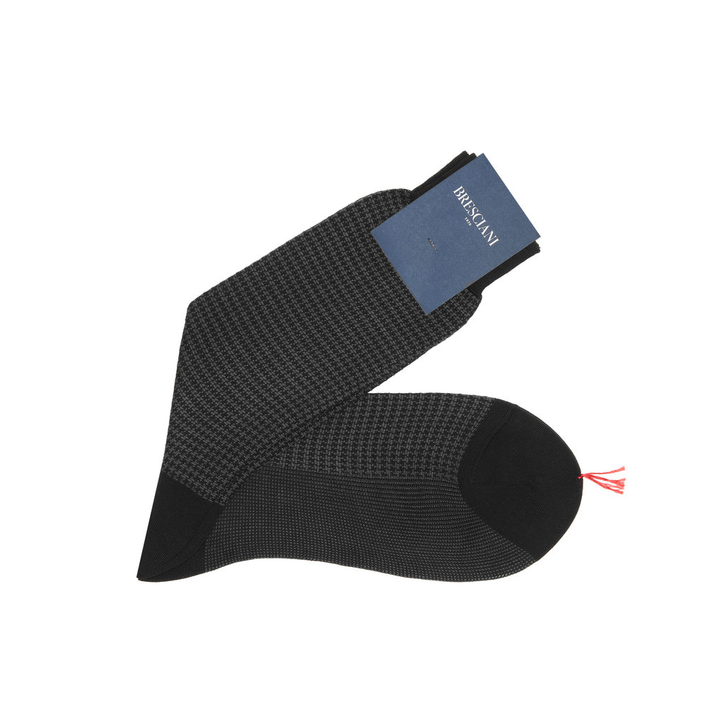 Ces chaussettes mi-hautes vous offrent un joli mélange des deux couleurs noir et gris anthracite. Le motif pied-de-poule de ces magnifiques chaussettes saura convaincre les connaisseurs de l'élégance. Ces chaussettes mi-hautes de qualité exceptionnelle remontent jusqu'à mi-mollet.