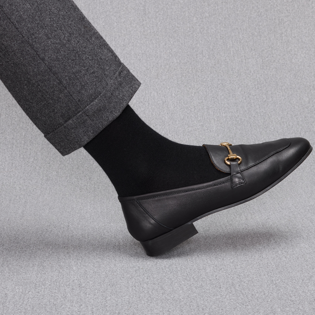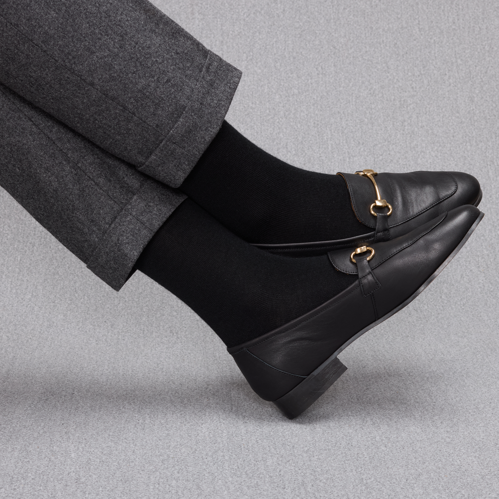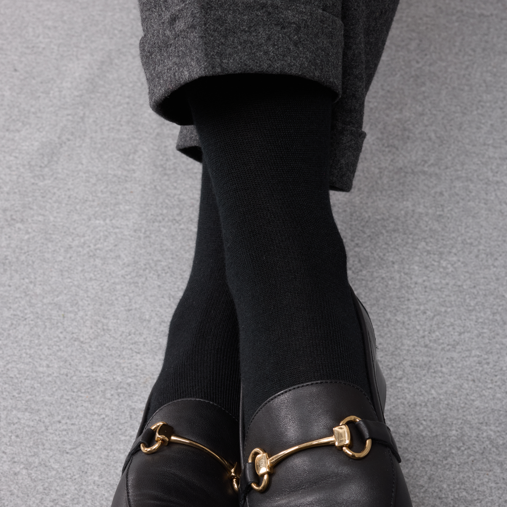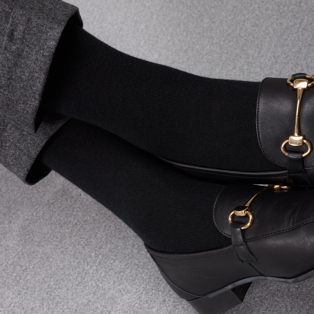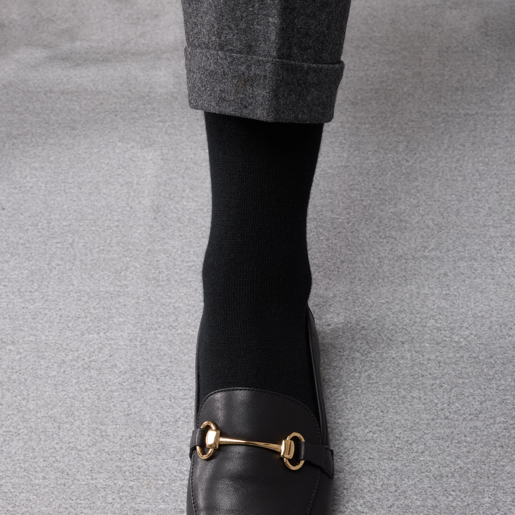 Chaussettes mi-bas : idéales à porter avec des costumes, meilleure tenues sur la jambe, arrivent sous le genou.