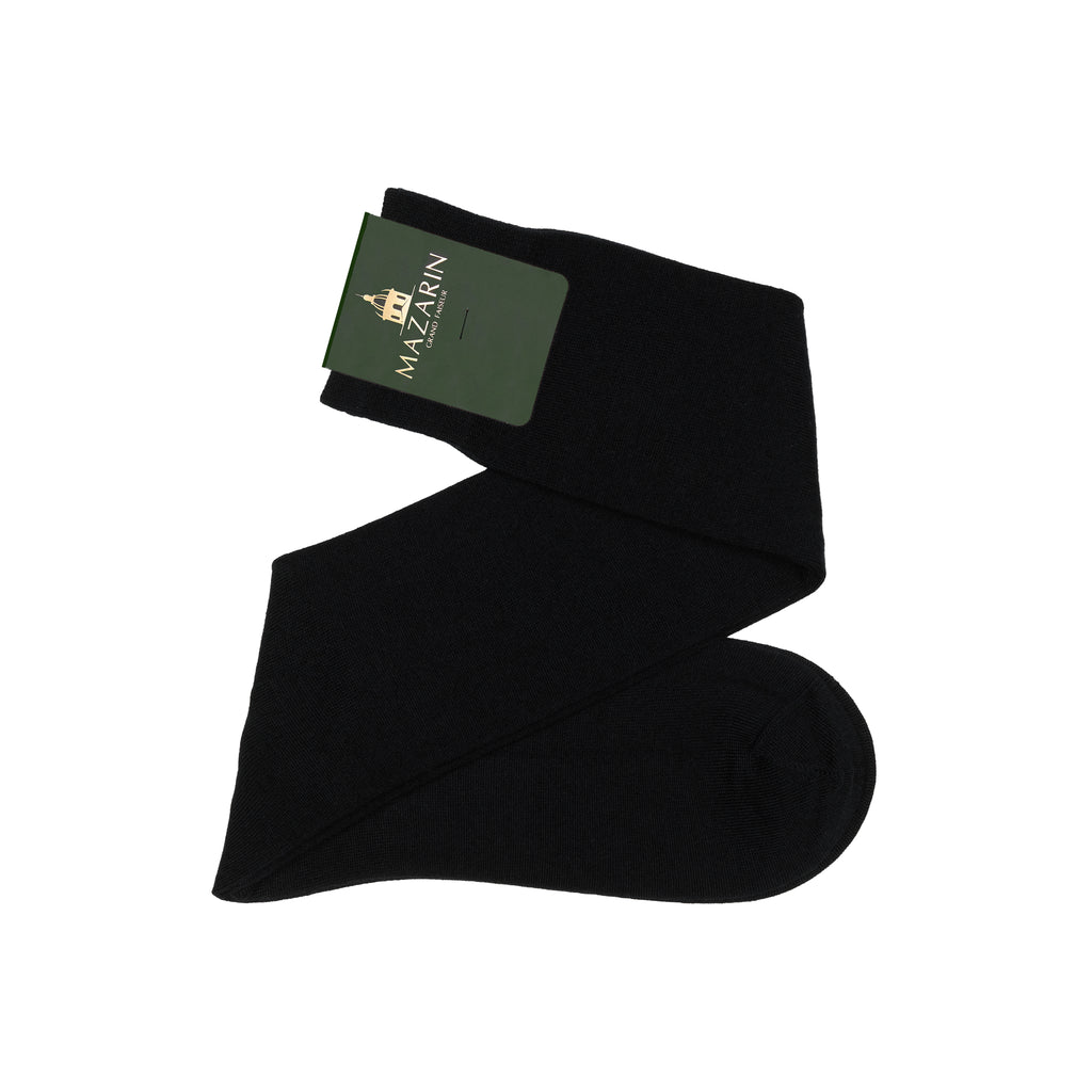 Chaussettes hautes pour femme, en laine et en cachemire de couleur noir, de la marque Mazarin.