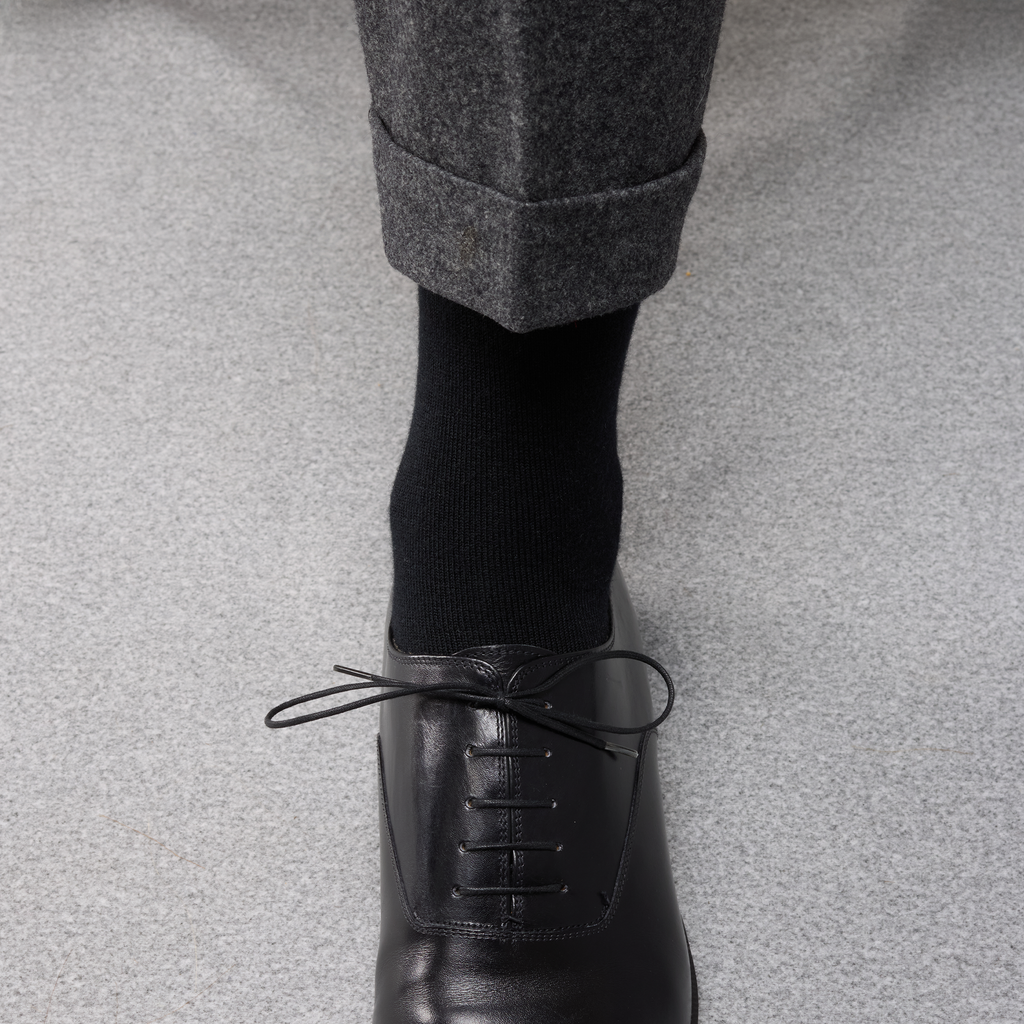 Avantages : elles ont plus de tenue et couvrent le tibia en entier. Leur hauteur est adaptée pour être portée avec des pantalons de costume.