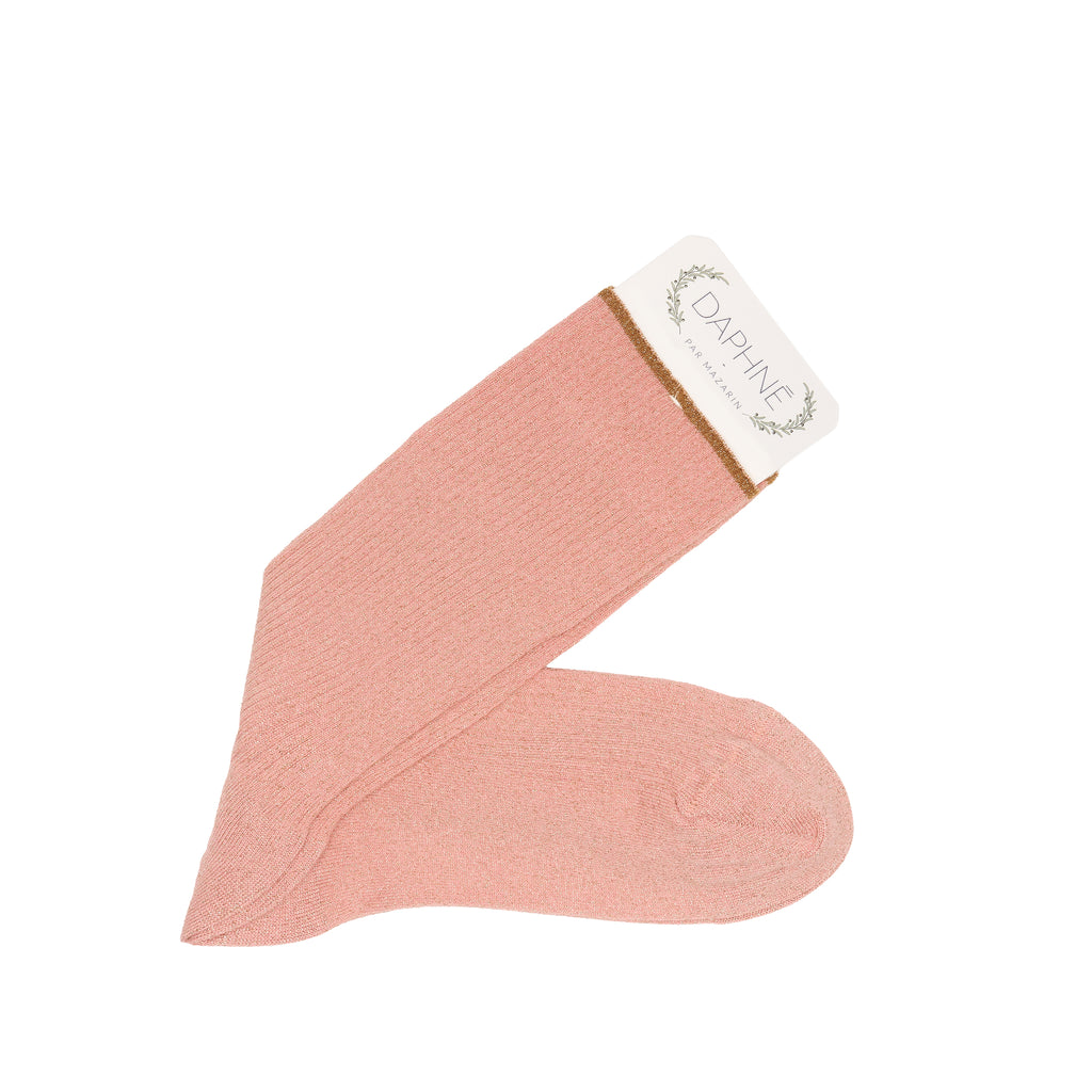 Chaussettes en coton mercerisé rose poudré avec un motif de paillettes dorées, de la marque Daphné.