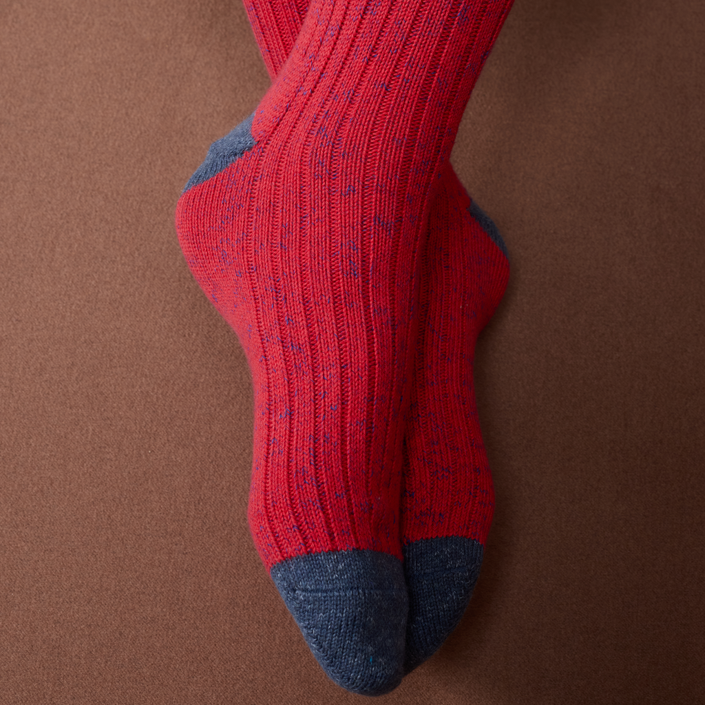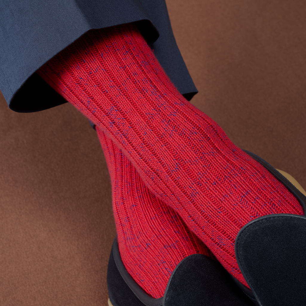 Chaussettes décontractées rouge vif et bleu acier en coton, par Mazarin.
