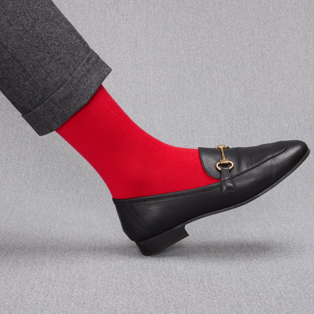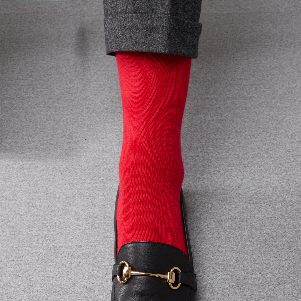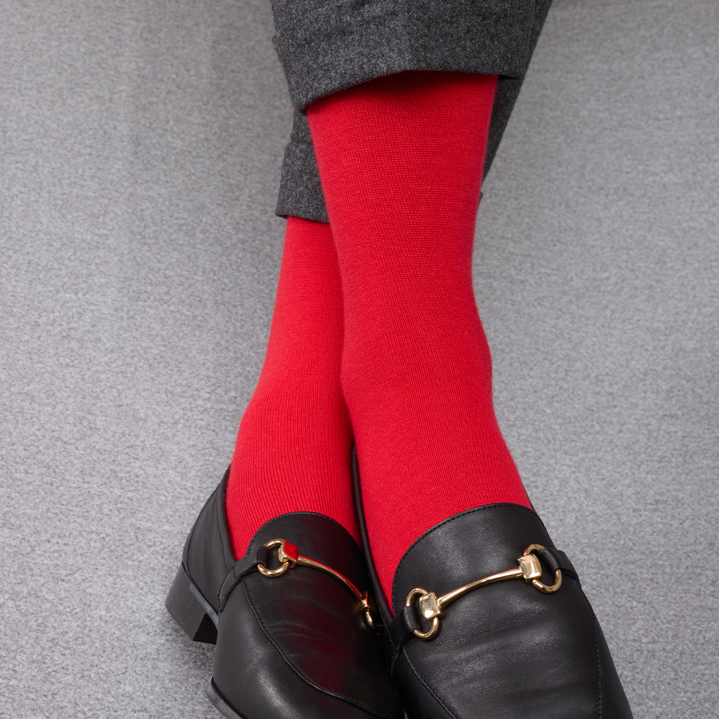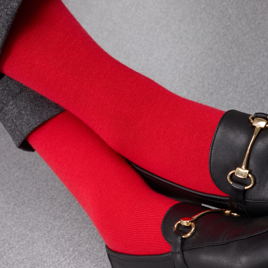 Cette paire de chaussettes hautes se distingue par sa teinte rouge élégante et affirmée, idéale pour apporter une touche de caractère à vos tenues. Lumineuse et pleine de personnalité, cette couleur reste pourtant facile à associer, notamment avec des tons sobres comme le gris, le noir ou le bleu marine, mais aussi avec du beige ou du marron pour un contraste harmonieux.