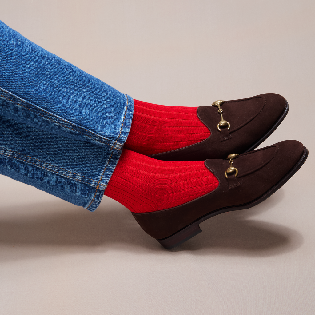 Les chaussettes rouges sont originales et élégantes à la fois par leur histoire (référence au rouge cardinal Gammarelli) et par leur teinte vive. Elles apporteront un peu de fantaisie à vos tenues !