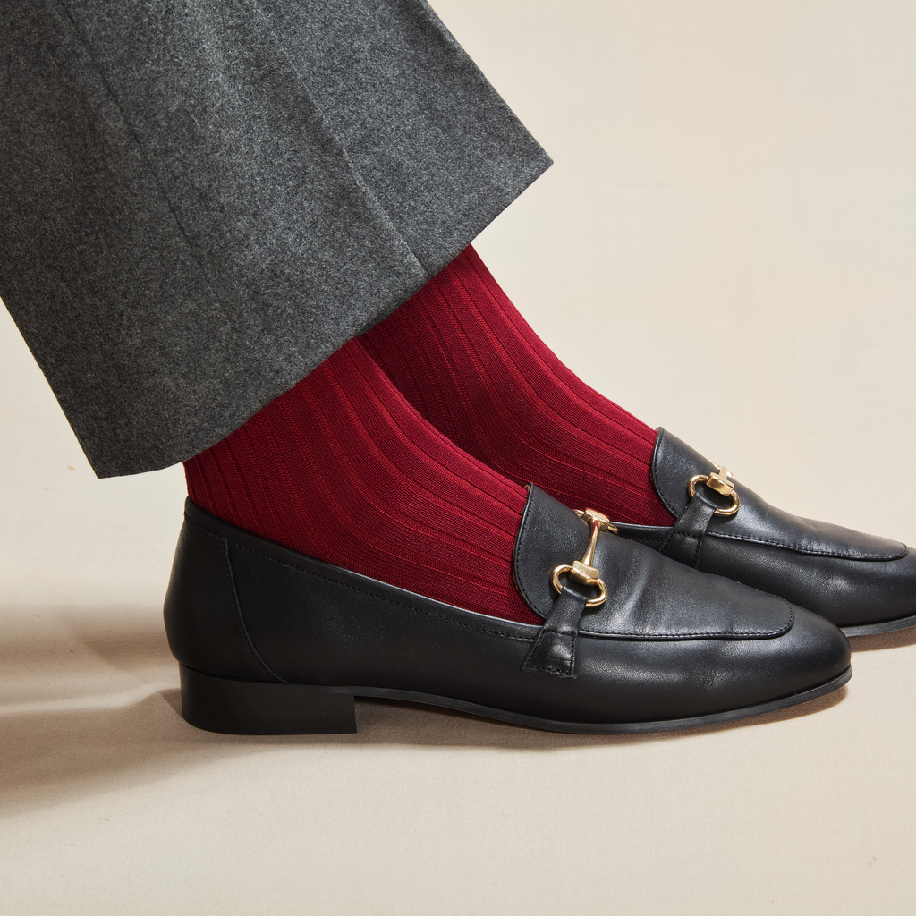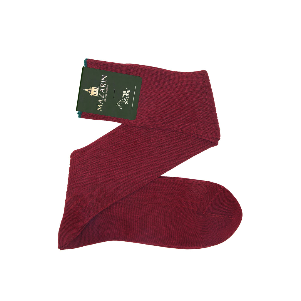 Chaussettes hautes pour femme en fil d'Écosse renforcé, de couleur rouge Vauban, par la marque Mazarin.