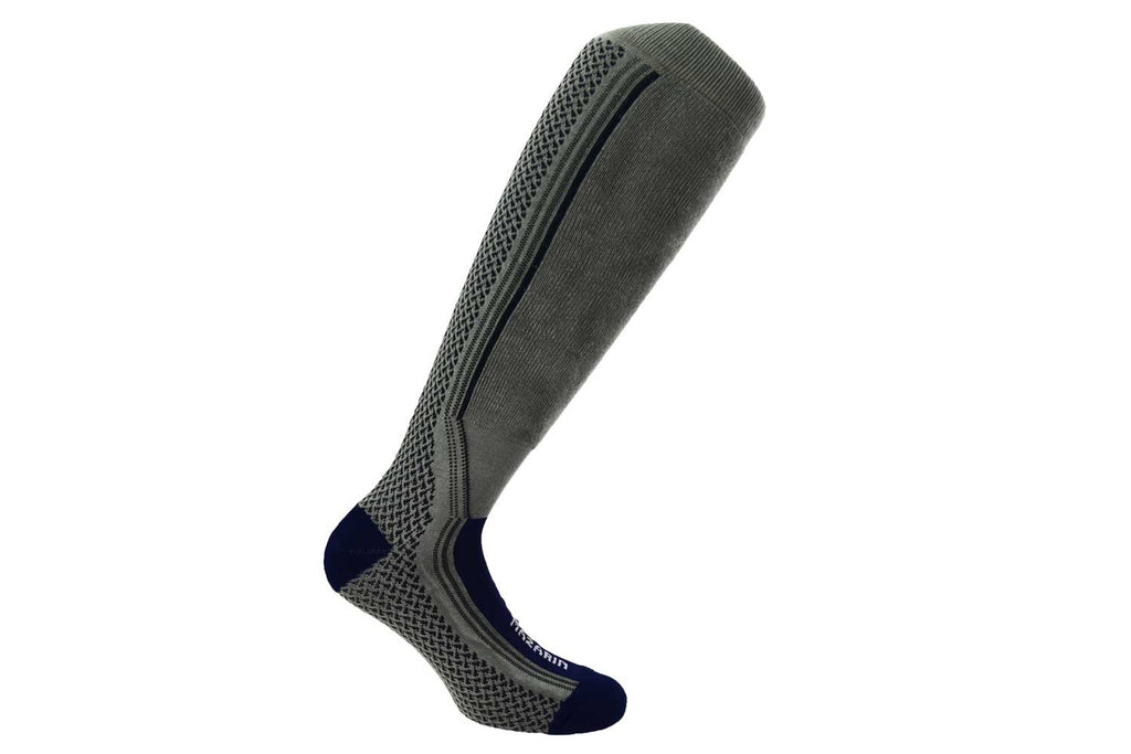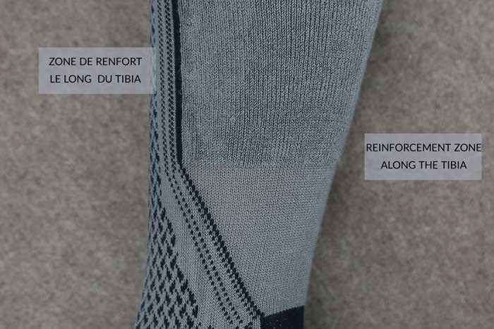Voici des chaussettes de ski solides, légères et fines à la fois. Pour les passionnés qui skient jusqu'au printemps, ces chaussettes sont idéales. Grises et bleu marine, ces chaussettes de ski ont une zone de renfort qui protégera votre tibia durant votre session de ski. Une autre est également tricotée sous le pied, allant de la pointe jusqu'au dessus du talon.