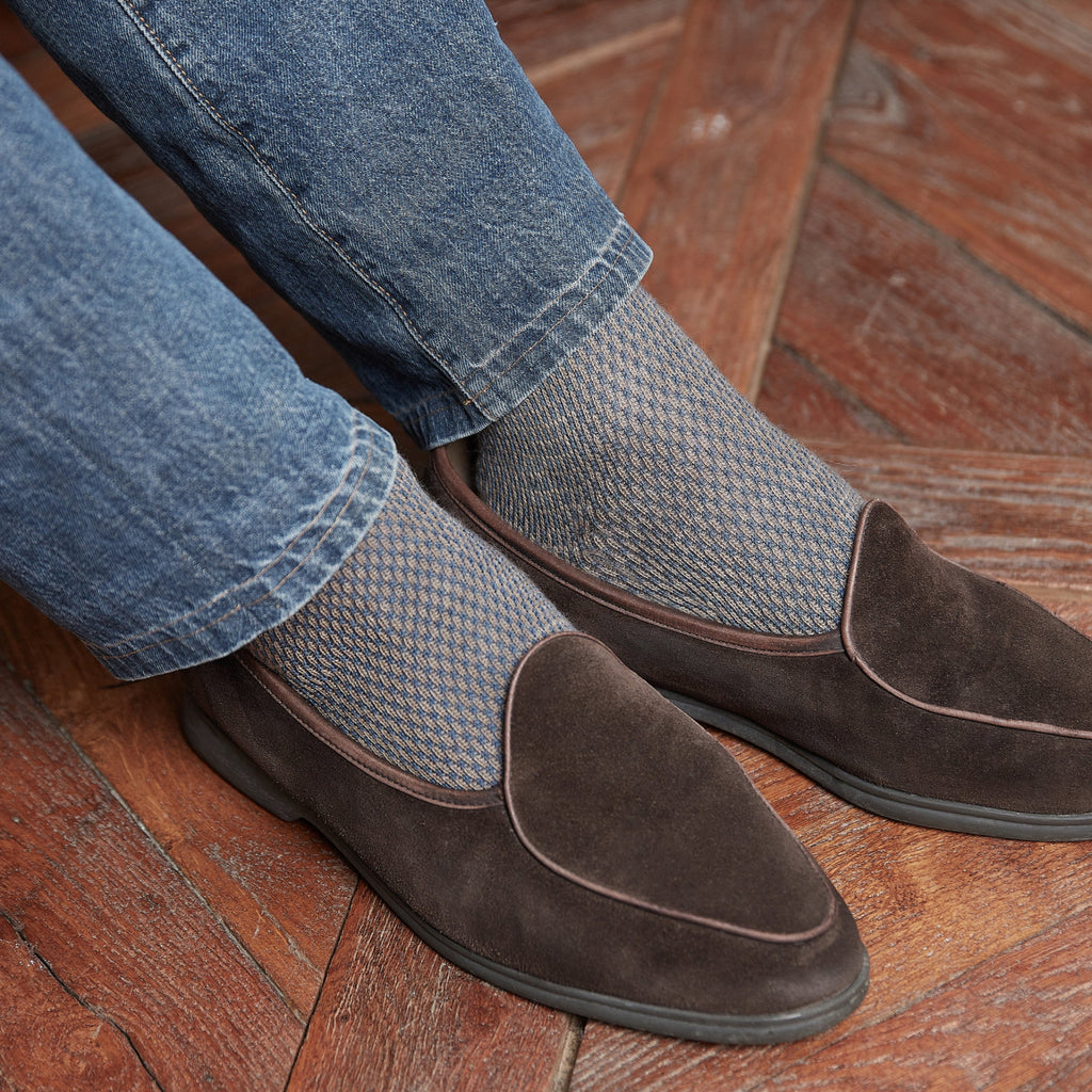 Avantages : elles ont plus de tenue et couvrent le tibia en entier. Leur hauteur est adaptée pour être portée avec des pantalons de costume.