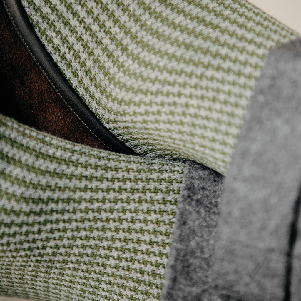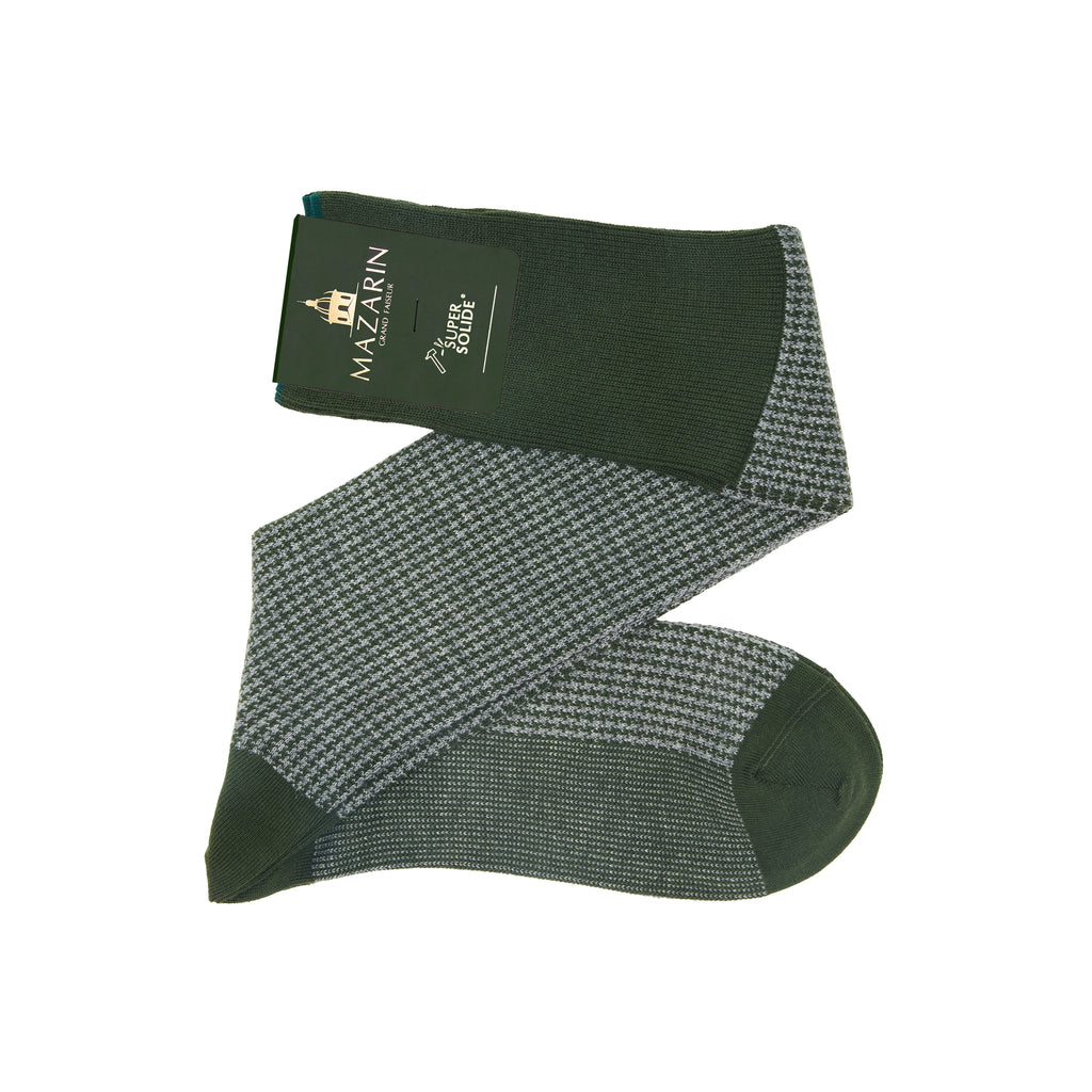 Mazarin continue de rechercher l'excellence pour vous satisfaire ! La gamme super-solide s'étend avec une nouvelle composition, toujours aussi résistante tout en étant plus douce ! Ce motif pied de poule mêlant du vert kaki et du gris chiné s'associera facilement avec une tenue grise ou bleu marine.