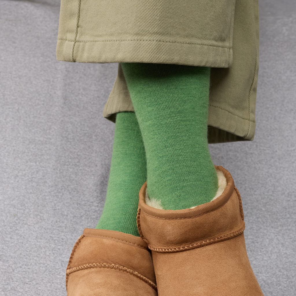 Chaussettes hautes pour femme, en laine et en cachemire de couleur vert prairie, de la marque Mazarin.