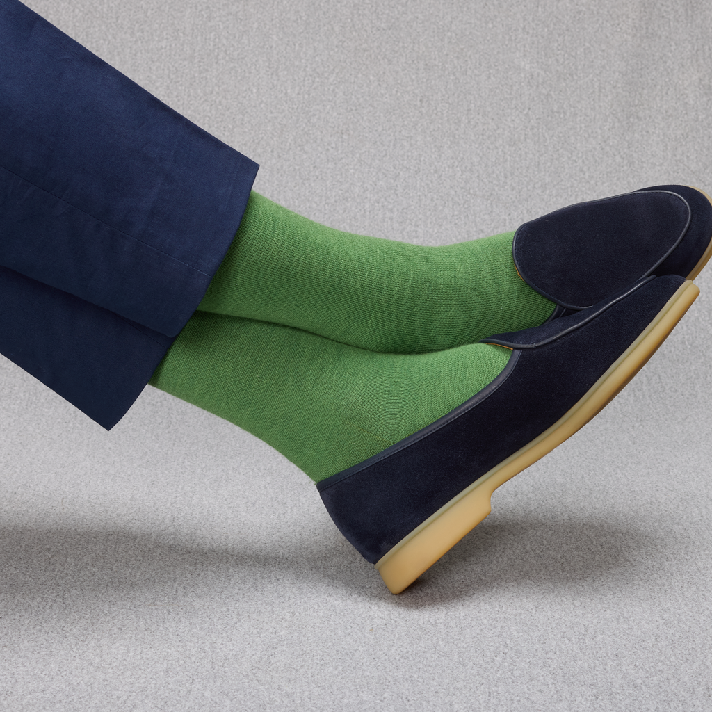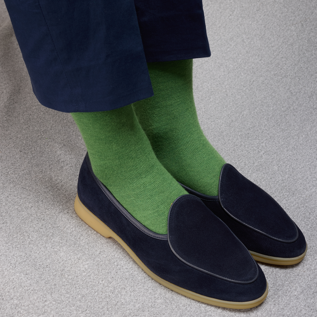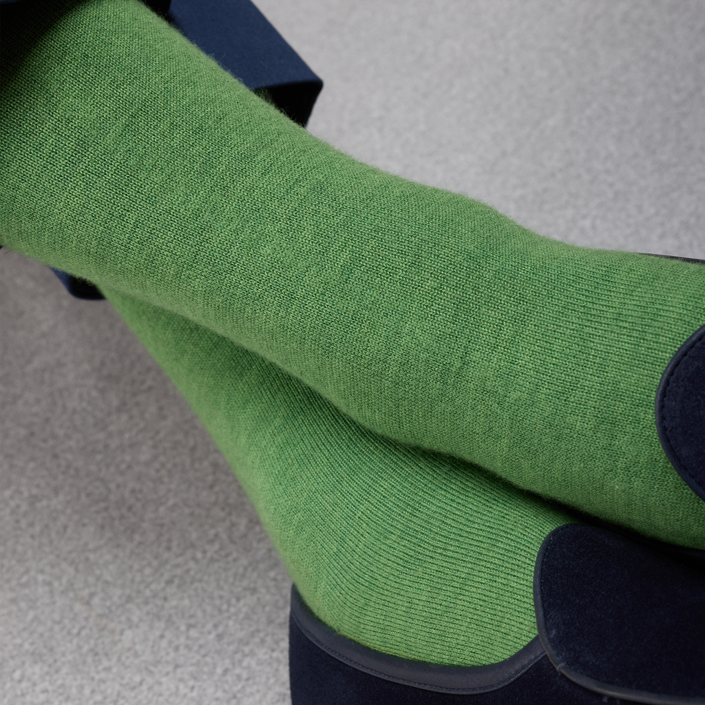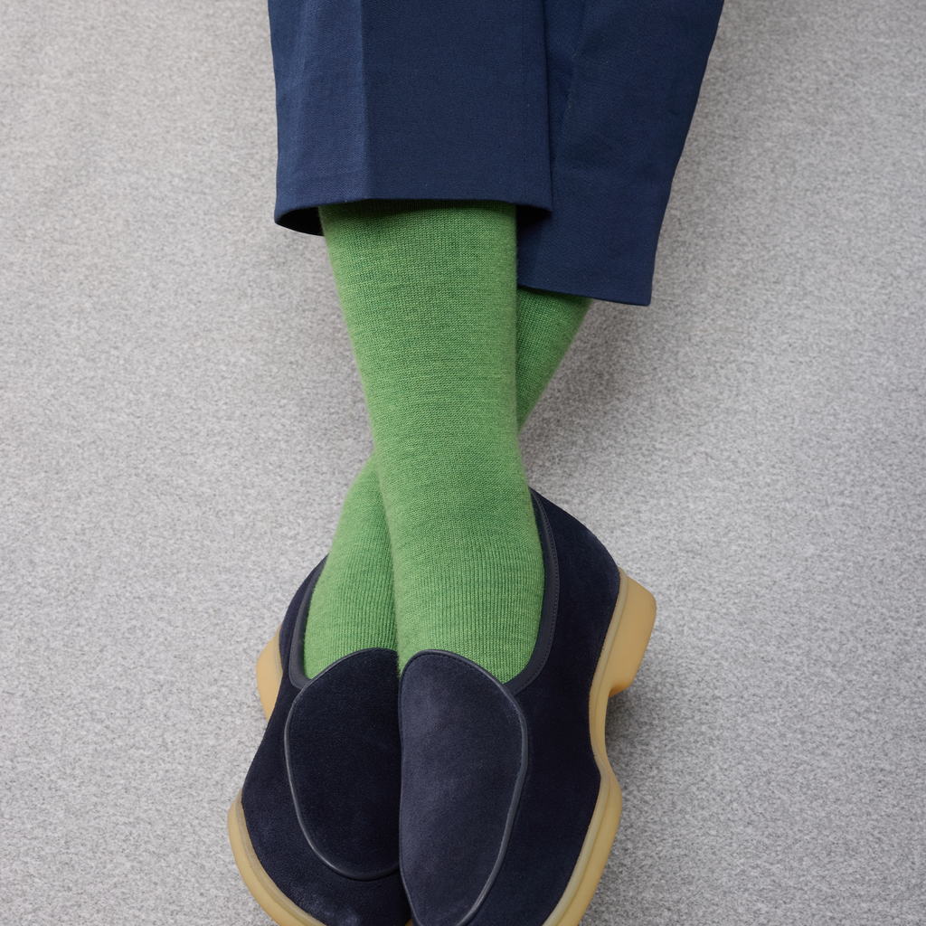 Chaussettes mi-mollet en laine et en cachemire de couleur vert prairie, de la marque Mazarin.